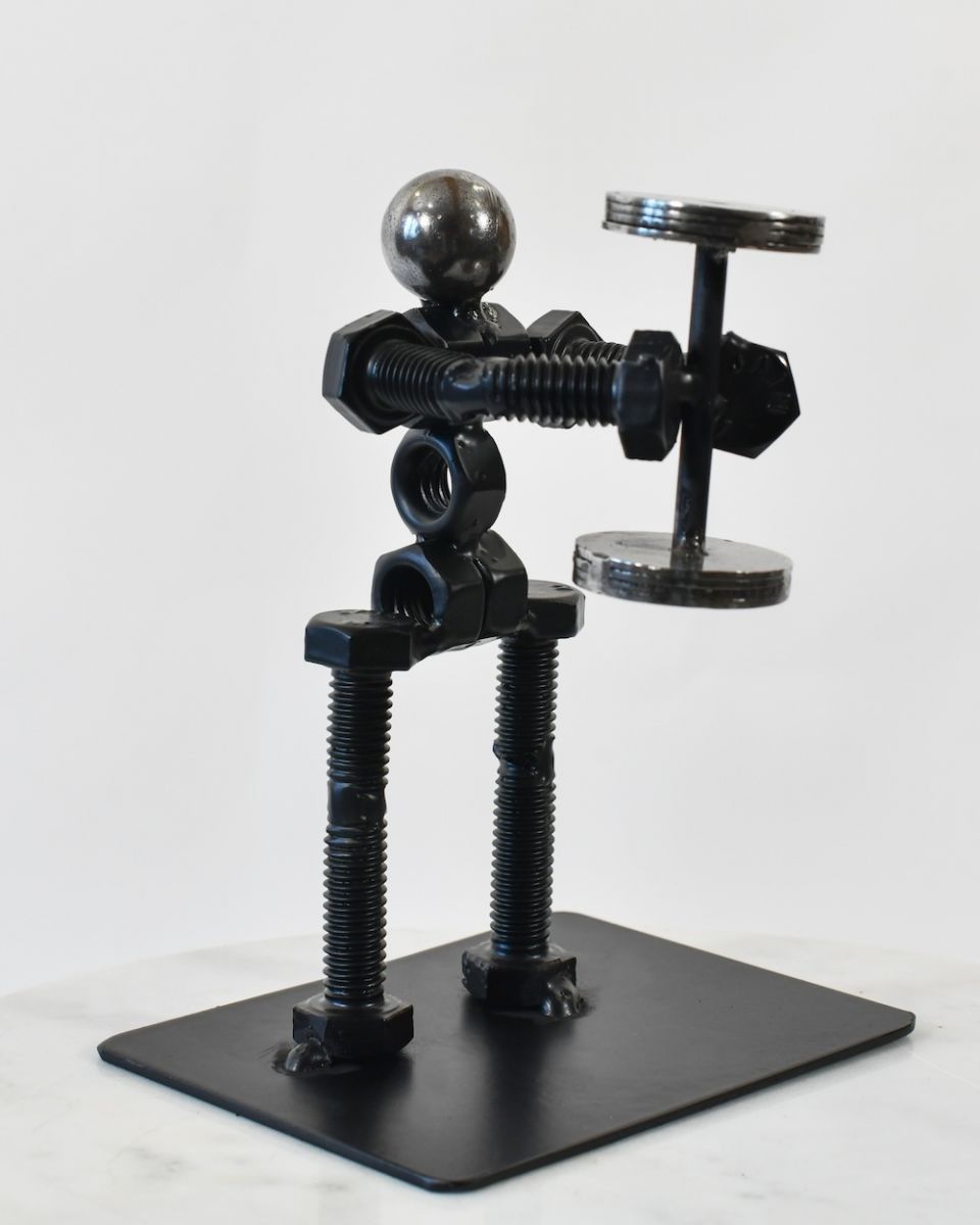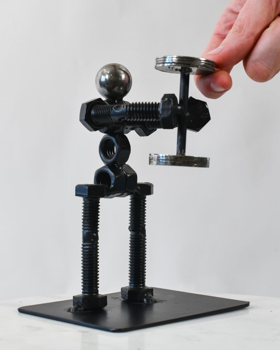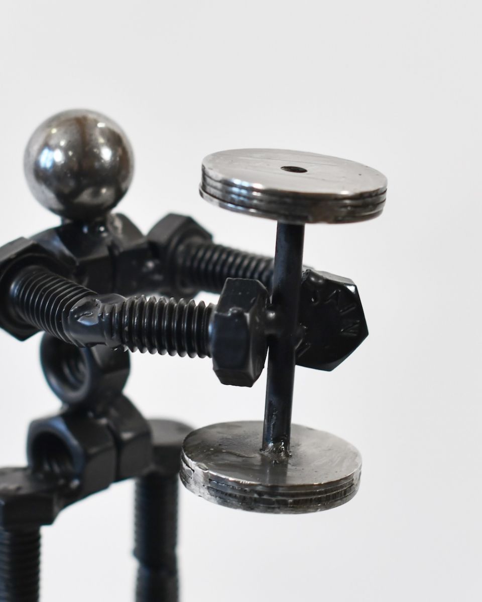 Our Recycled Metal Weight Lifting Sculpture is a unique and characterful addition to any home. Skillfully crafted from scrap metal pieces to save them from landfill, this is a no-guilt gift that would delight any gym goer!