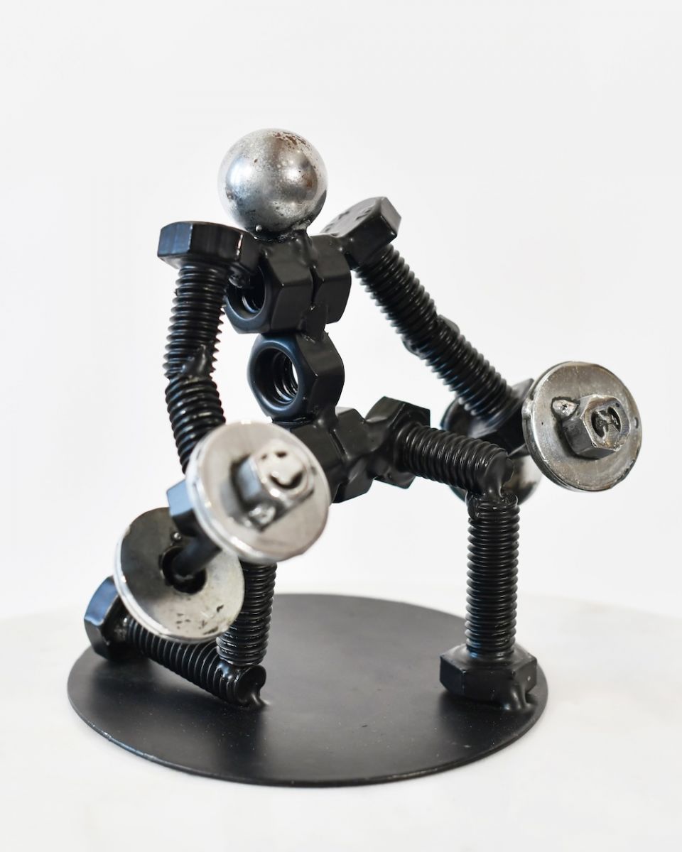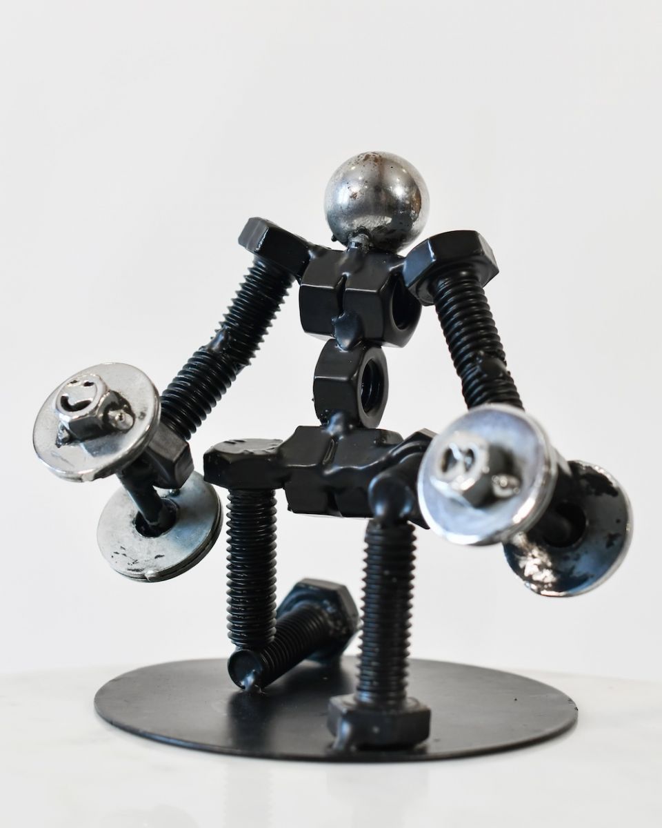 Our Recycled Metal Weight Training Sculpture is a unique and characterful addition to any home. Skillfully crafted from scrap metal pieces to save them from landfill, this is a no-guilt gift that would delight any gym goer!