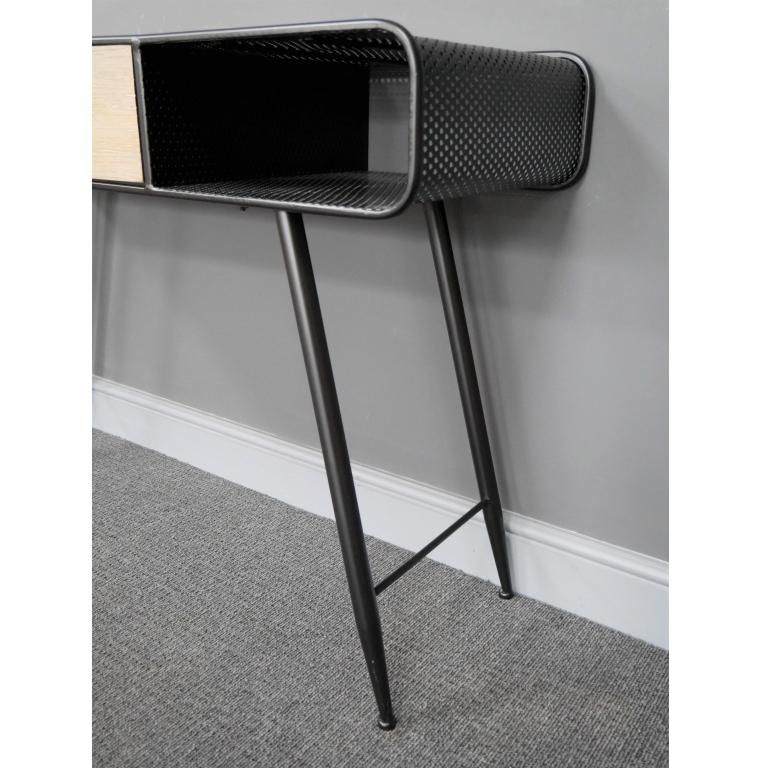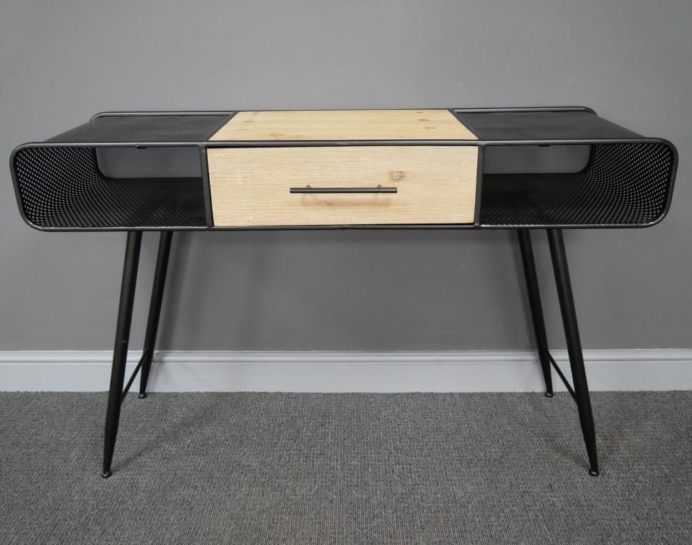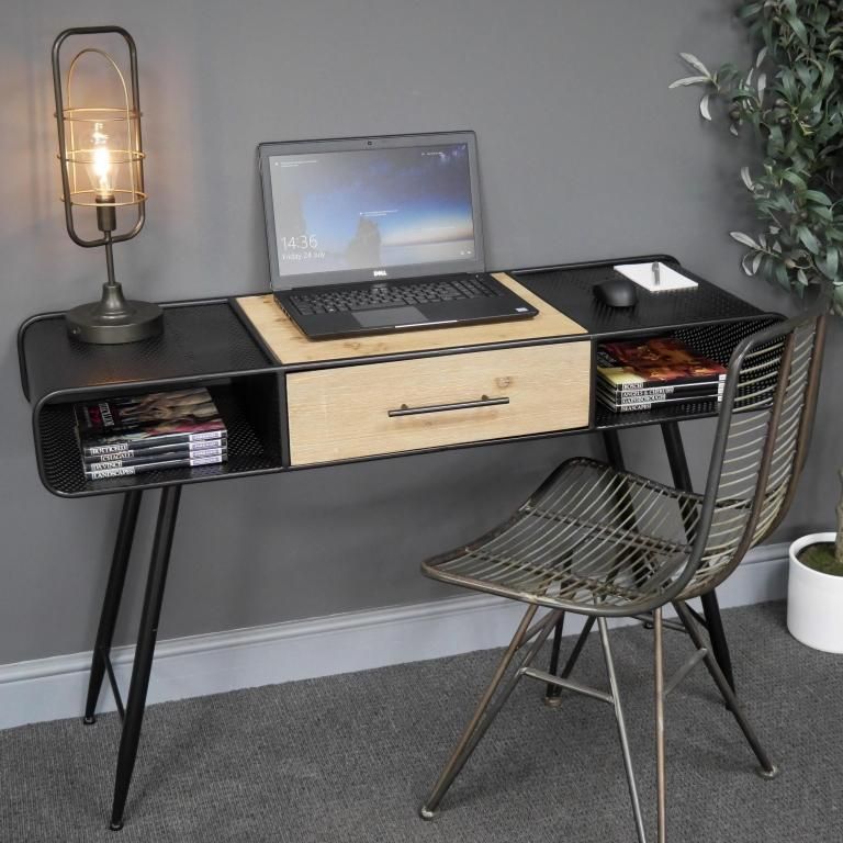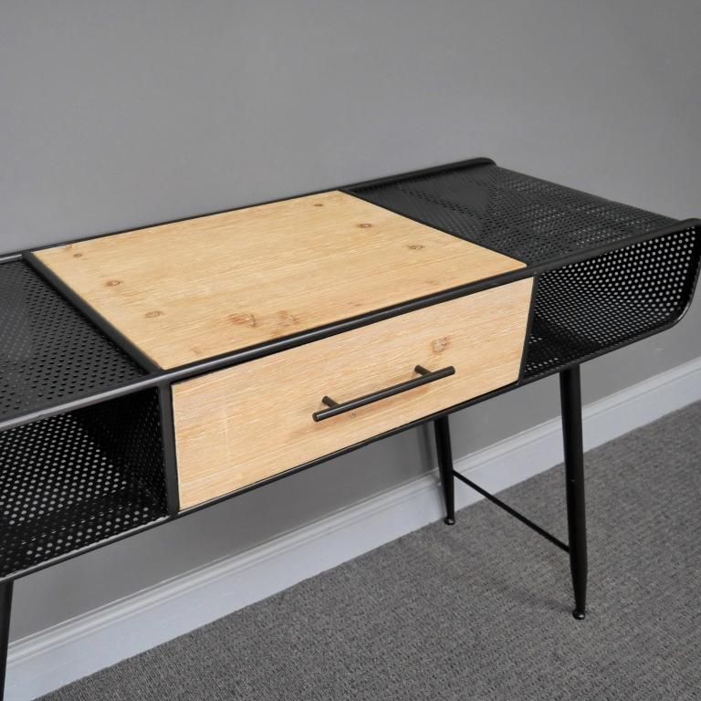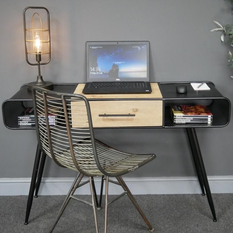 Crafted from a combination of retro-inspired metal and fir wood, this desk is the perfect addition to any home office or living space. Featuring an arched frame design, there is storage on either side of a central fir wood cabinet. Also features four integral legs to provide maximum support whilst allowing for room to place a chair to sit comfortably during use.