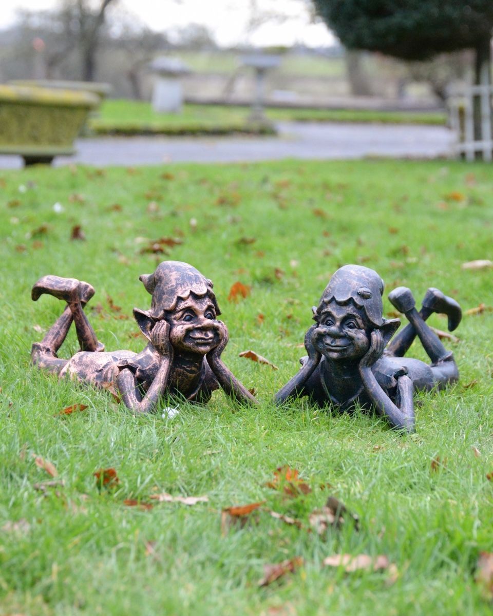 Crafted from durable cast aluminium, the ‘Reverie’ Pixie sculpture is an enchanting way to add woodland whimsy to your garden. Completed in a classic verdigris patina to enhance the detailing throughout, this mischievous pixie offers a cheeky personality that will add impish charm to your home, whether tucked away in the grass or soaking up the sun on a patio.