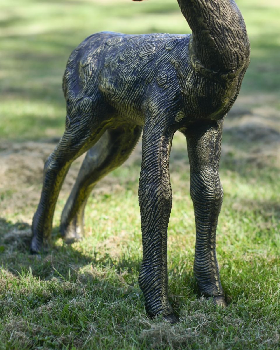 Perfect to be placed as a stand alone sculpture or with others in the range. Due to her smaller size she can be suited to smaller gardens as well as larger spaces allowing you to pay homage to this stunning creature. The life-like metal work captures the detail of the spotted fur pattern and adoring facial expression.
