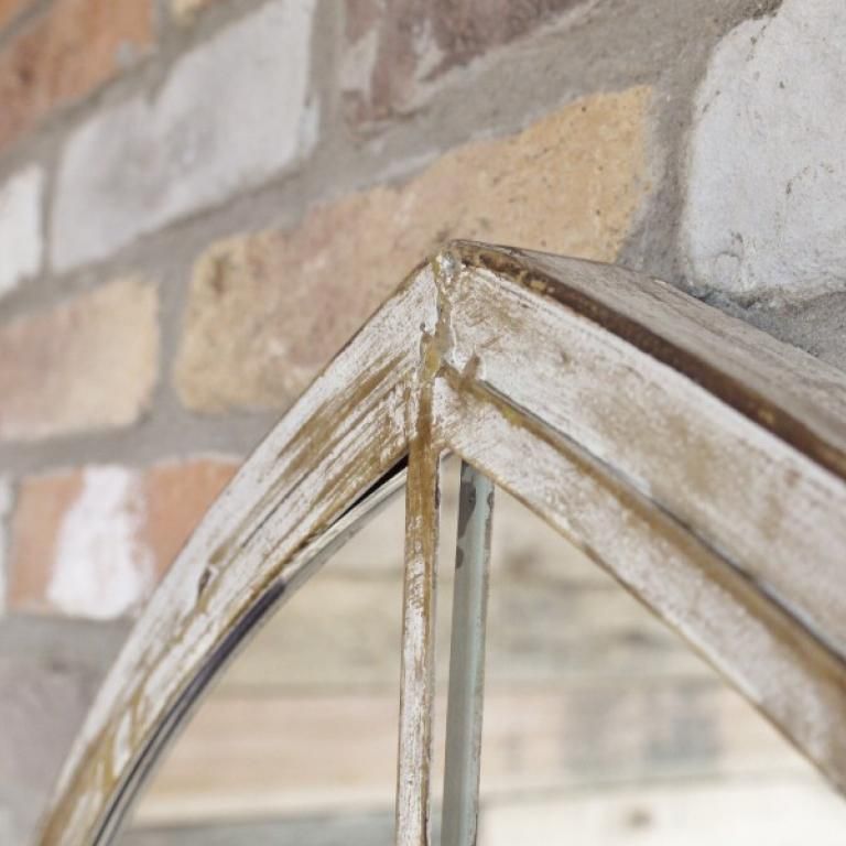 Crafted from a combination of metal and reflective glass, this arched mirror is complete in a rustic effect finish, designed to be wall-mounted. This is suitable for both indoor and outdoor use, featuring a beautiful arched design. With the frame merging amongst the glass for a classic design feel.