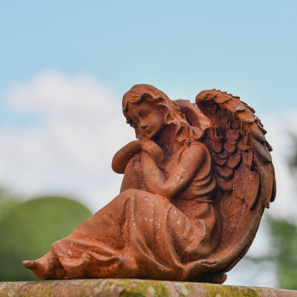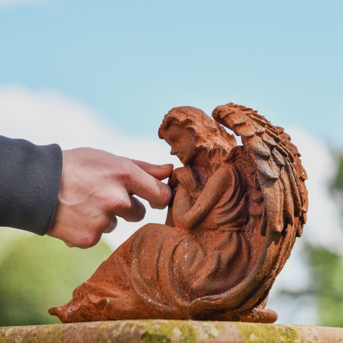 Created as if taken directly from a moment in time, this fantastic garden sculpture depicts an angelic winged angel as she sits deep in thought. Created from high quality cast iron and left to naturally age when exposed to the elements, this sculpture will create a wonderful calming atmosphere in the garden, patio or porchway. Despite being created from a cast, this sculpture is highly detailed throughout, including wing feathering, ruffles in her dress and strands of hair. Keep as a single item or pair with others in the angel collection.