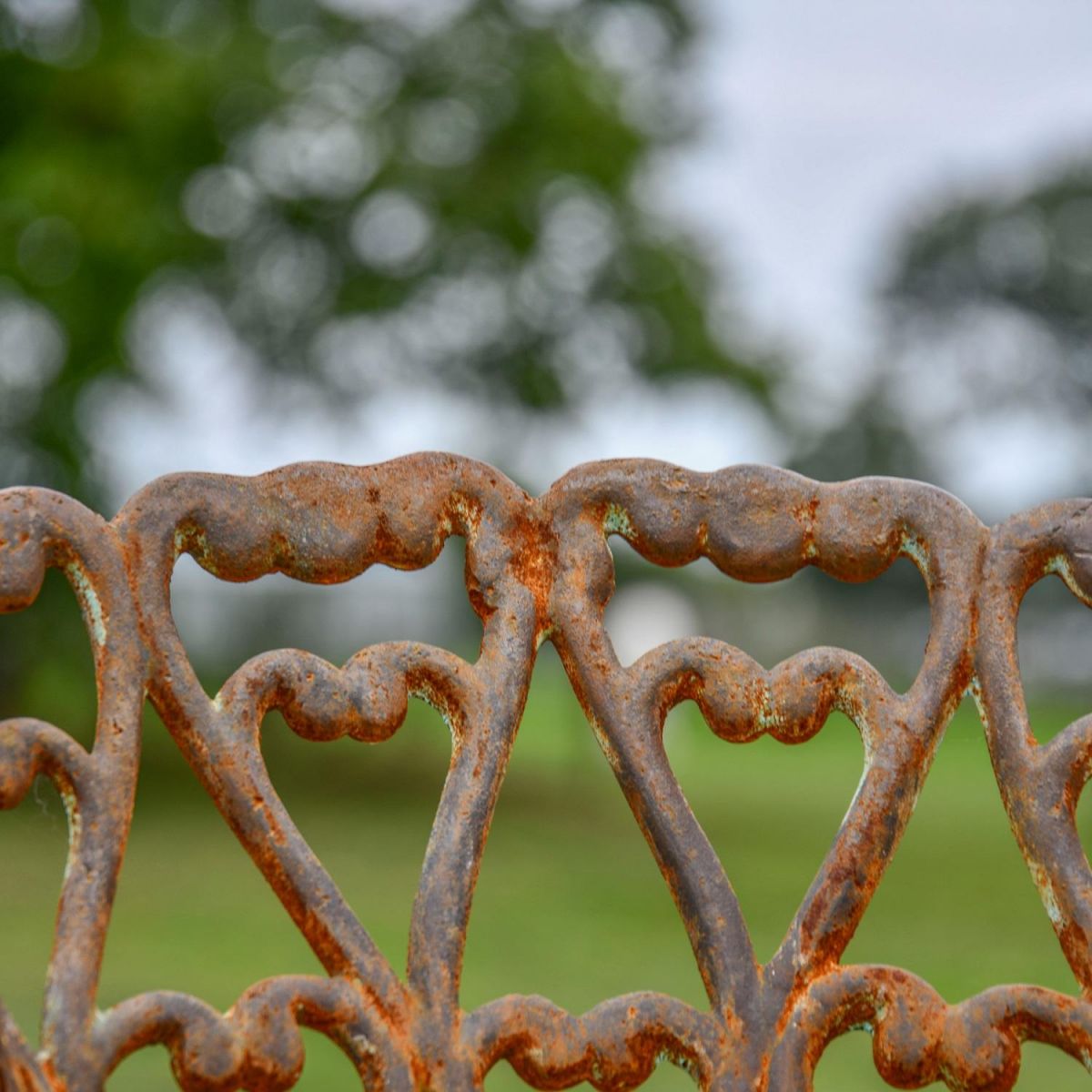 Ideal for one person, this quirky garden bench has been expertly handcrafted from robust cast iron and left finished in a rustic iron effect. Complete with a curved backrest, two scrolled armrests, and four integral legs, this bench features delicate heart-shaped scrolls across its framework and would look simply lovely against a backdrop of flowers or foliage. Ideal for placement within a lawn or patio area, this outdoor seat is the perfect way to enjoy your garden throughout the warmer moments of the year!
