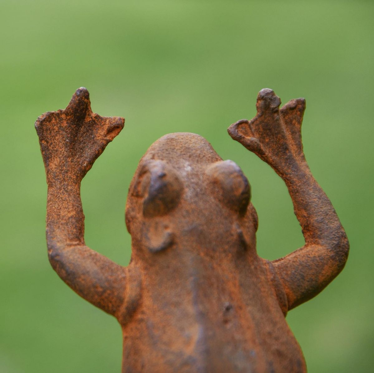 Throw your hands up in the air with this fun and quirky frog garden sculpture. Made from cast iron and left to age naturally creating this fantastic rustic finish, this garden sculpture features a frog on his back legs as he extends his arms into the sky. Complete with a integrated base for stability, this sculpture can be placed in the desired location, including patios, porches and within flowerbeds.