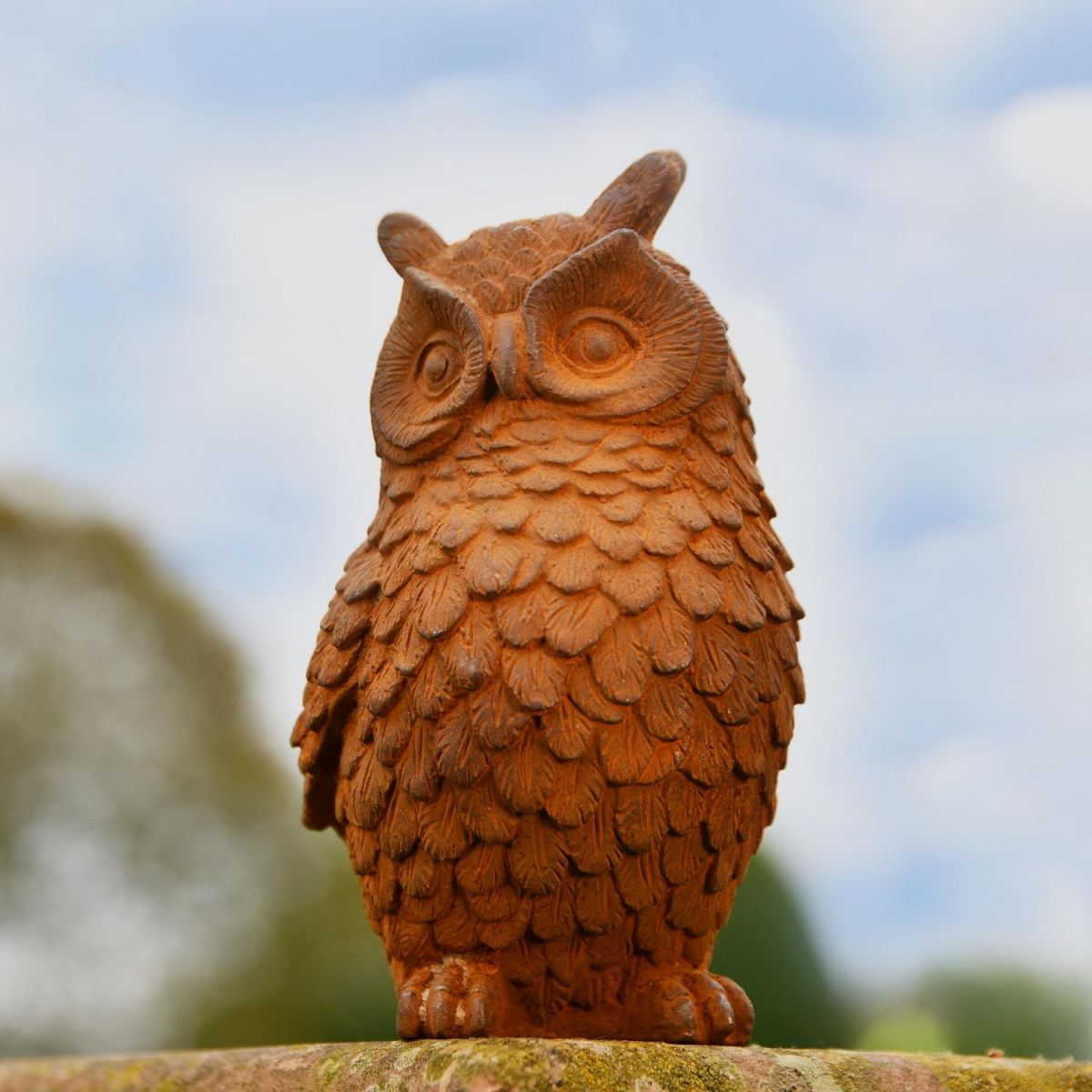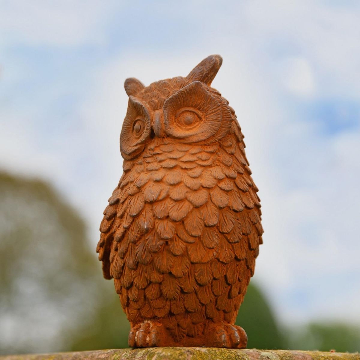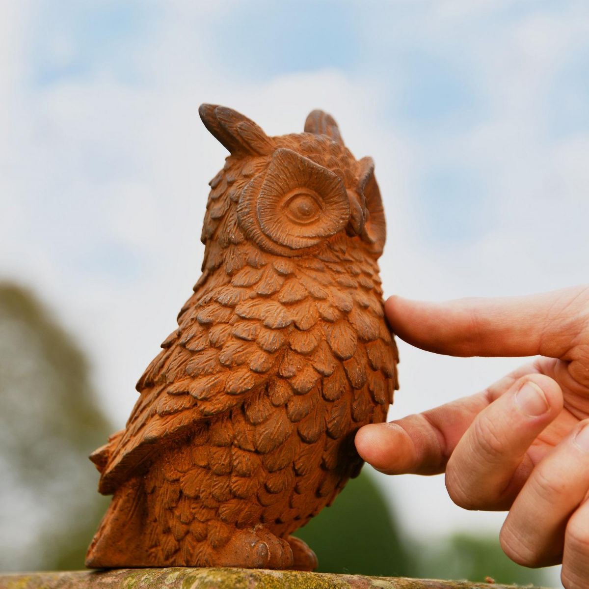 Oozing charm and character, this wonderful sculpture depicts a perched watchful owl. Despite its creation, from a casting, this sculpture is exquisitely detailed throughout, each ruffled feather is visible whilst the lines around the owl’s eyes are fine and delicate. A wonderful addition to any garden, which can be placed on patios, within flowerbeds and as statement pieces on plinths.