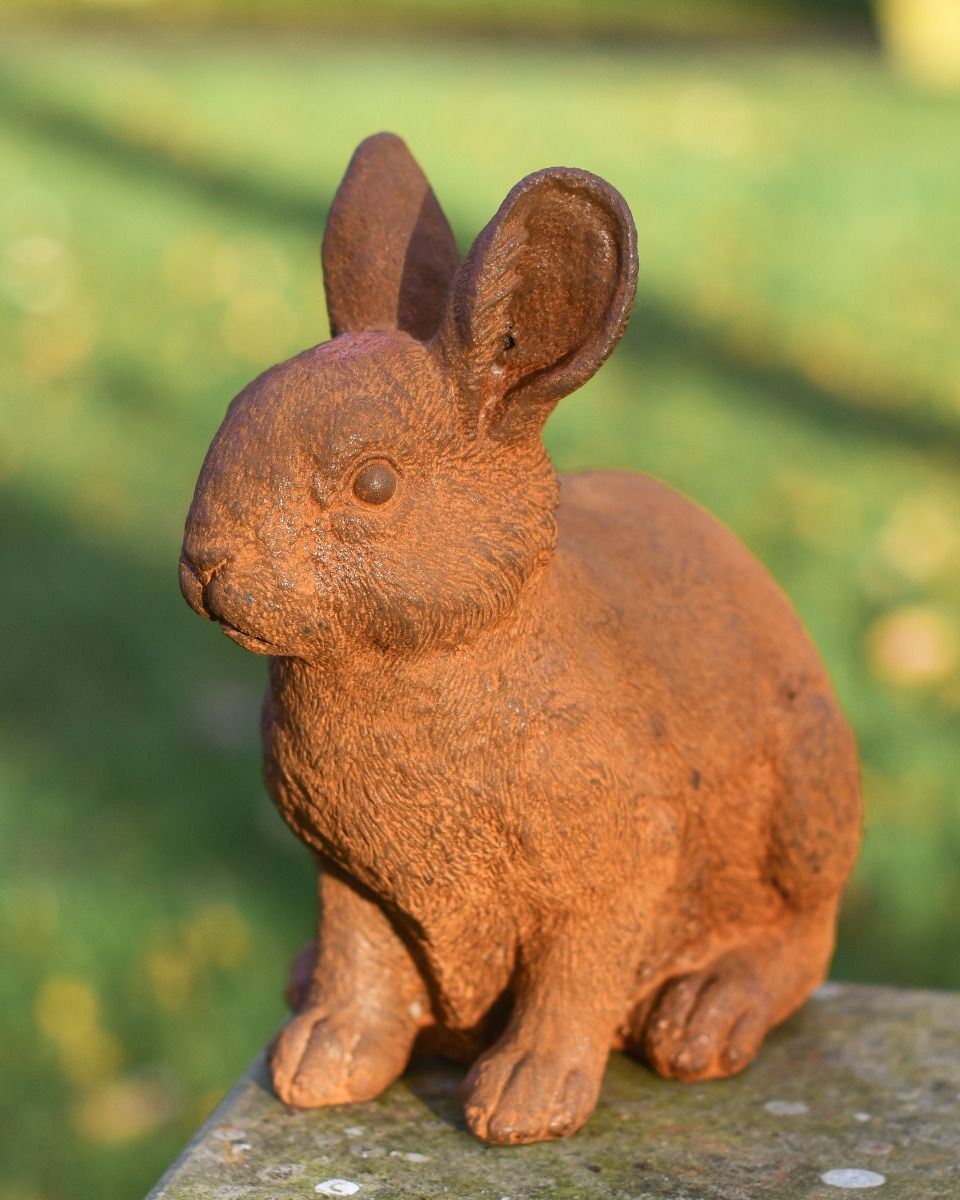 Crafted from cast iron this realistic rabbit sculpture makes a wonderful addition to any garden. Beautifully detailed and left to age this sculpture can be used alone or with others in the range. This rabbit would look lovely placed in flower beds, on plinths or garden walls.