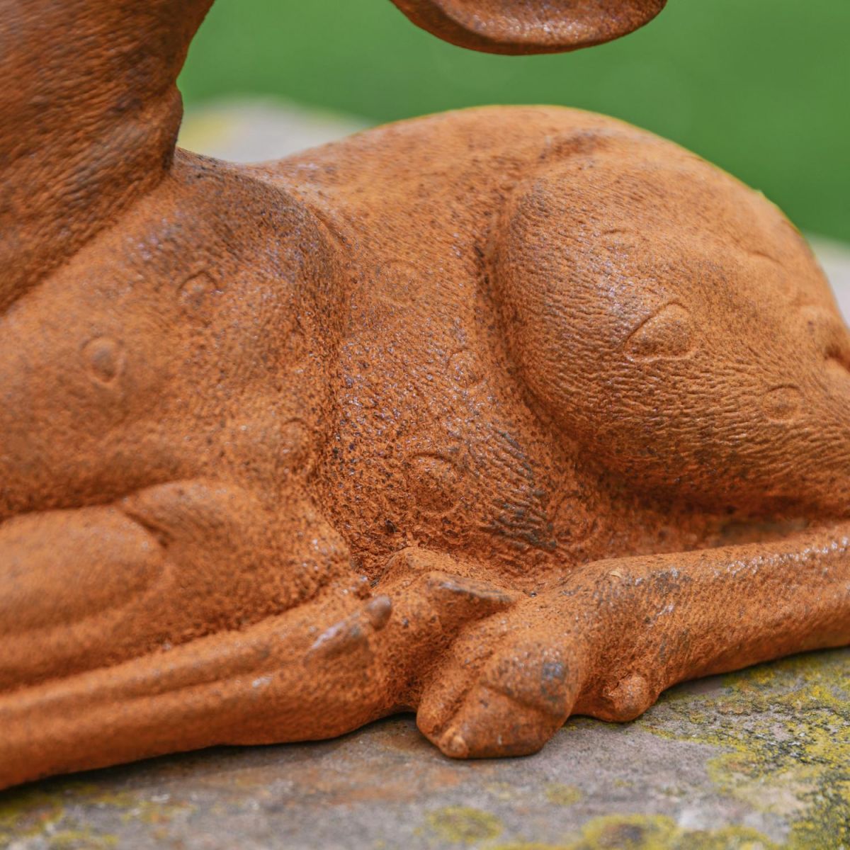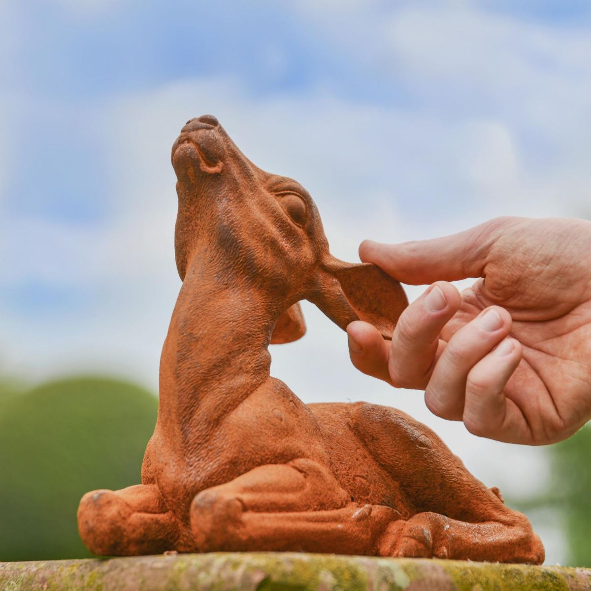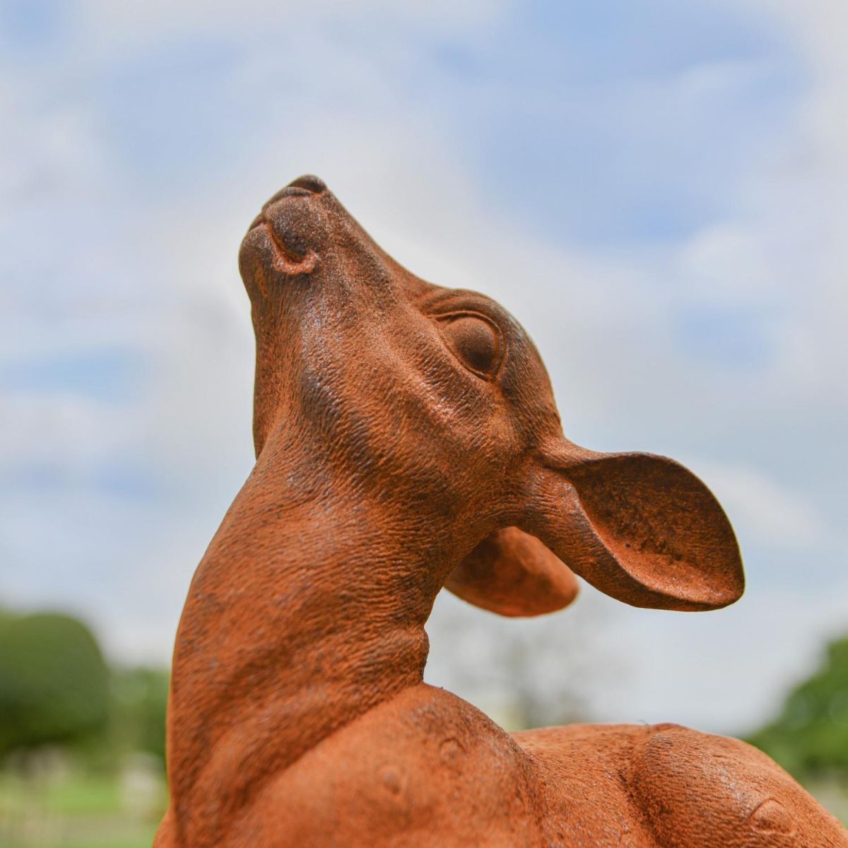 Expertly made and crafted using cast iron and left to produce a naturally aging rustic finish, this garden sculpture showcases a sitting doe, innocently looking up into the summer’s sky. Carefully and elegantly produced to show the detail of the animal, this is the perfect addition to any garden space befitting an animal and nature lover! Coming designed with a flat base designed to allow for the sculpture to sit flush along the floor or desired placement.