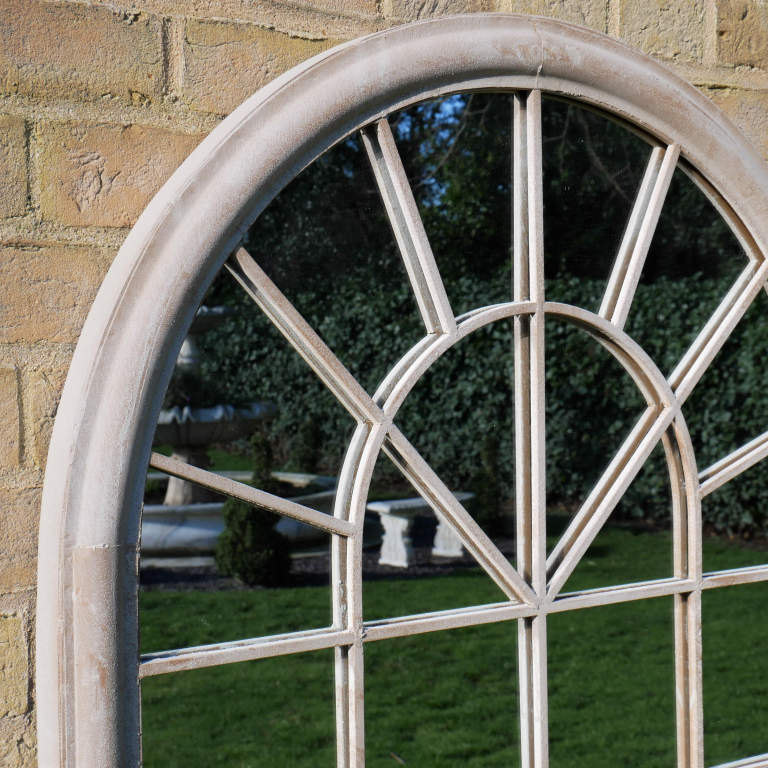 Expertly crafted using high quality metal and finished in a rustic cream finish, this arched garden mirror will certainly add delight to your garden for years to come. Garden mirrors are used to give the impression that the garden is larger than it actually is, thanks to the reflective aspects. A wonderful way to add character and charm to you garden space.