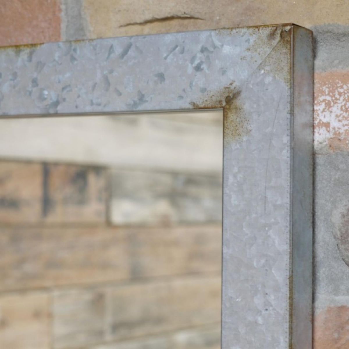 Made from galvanised metal, this mirror has a rustic distressed finish providing a shabby chic feel to any interior décor. With five hooks beneath the mirror, it makes for the perfect two in one accessory. This mirror would look great placed in a hallway or utility room.