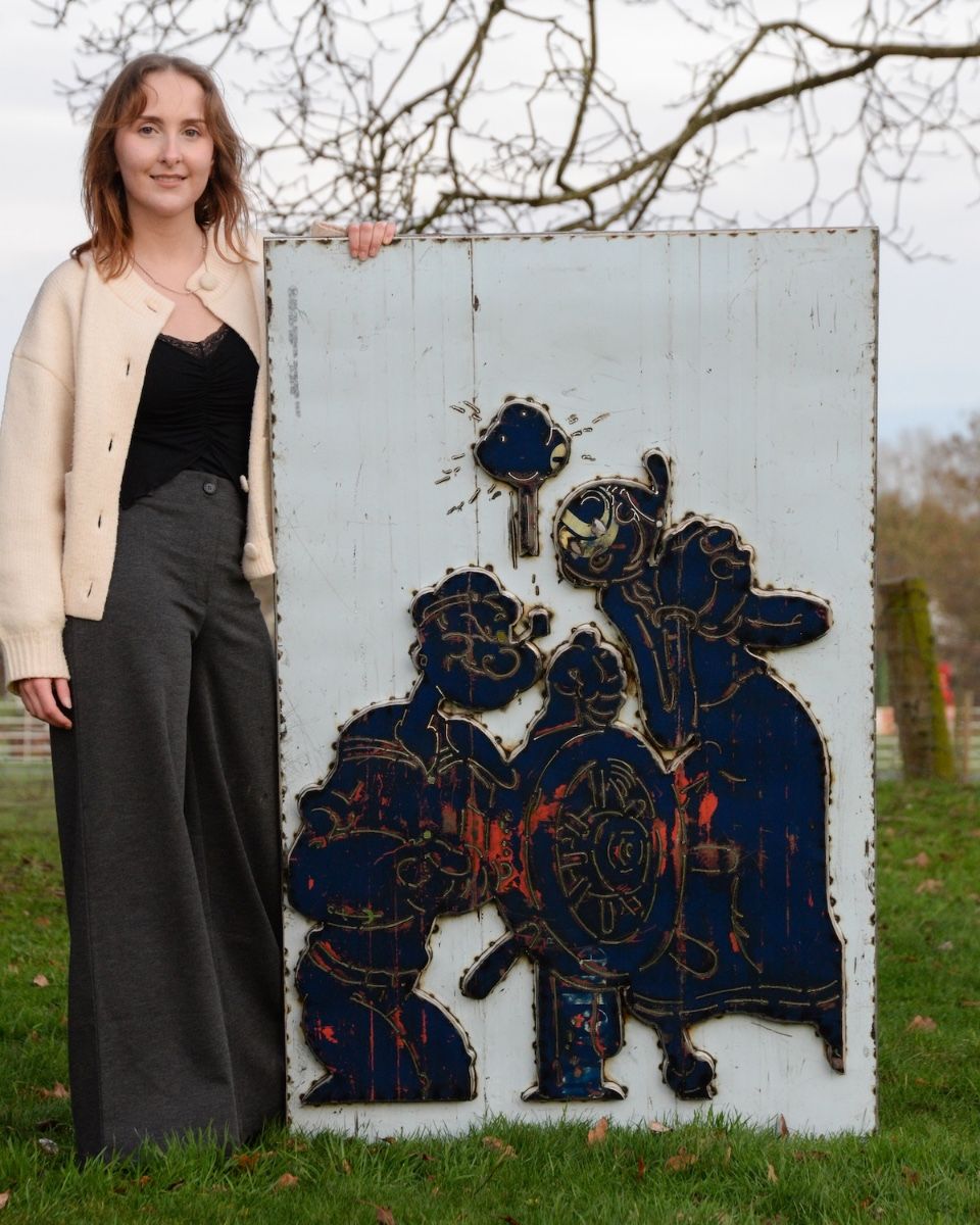 This well-known ‘Salty Sailor and his Lady’ wall art is instantly recognised around the world for his voyages and unstoppable strength. This classic sailor, along with the love of his life, has stood the test of time, from the golden age of animation to now. Standing next to his adoring partner behind the captain’s wheel. These memorable characters have now been transformed into a colourful industrial tribute, whilst keeping their enduring charm that has delighted generations.
