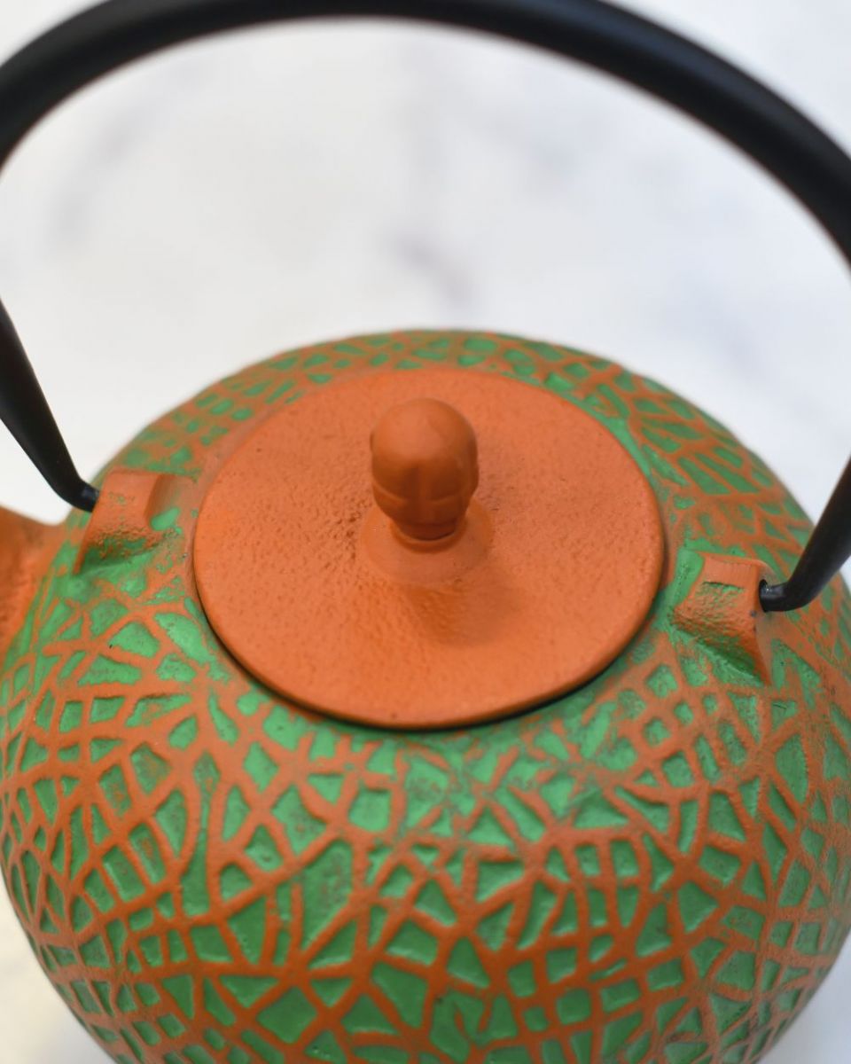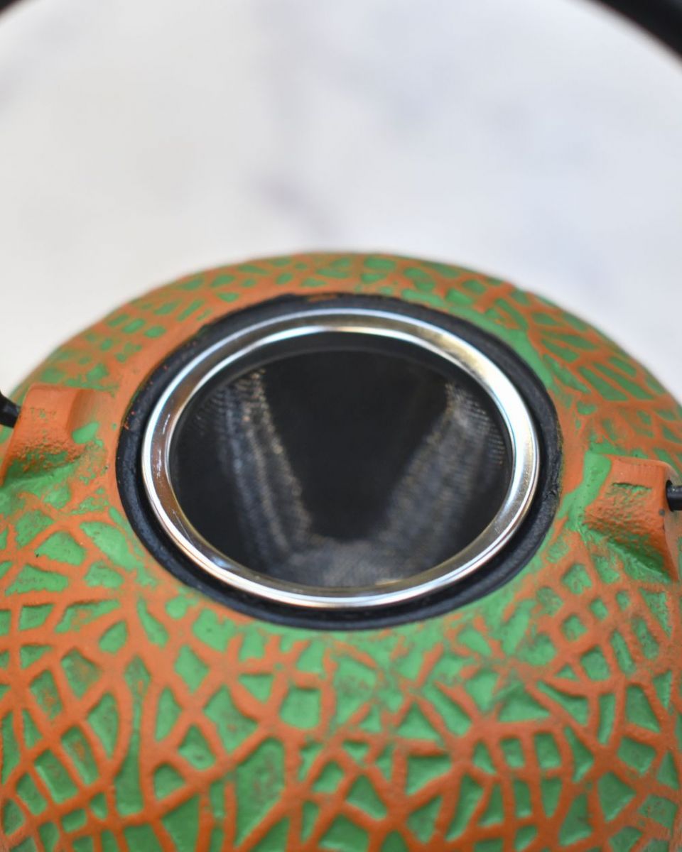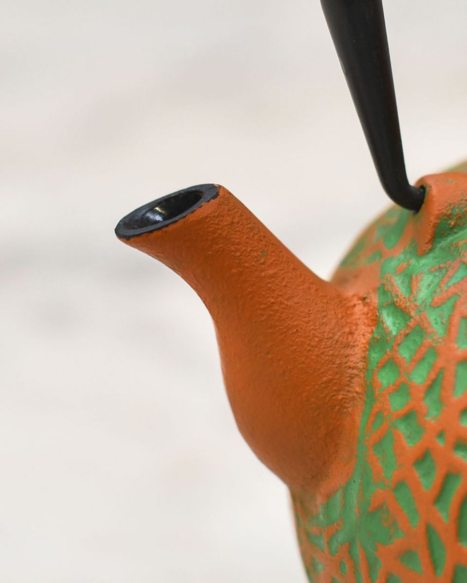 - "Sarda" Green and Orange Cast Iron Japanese Style Teapot