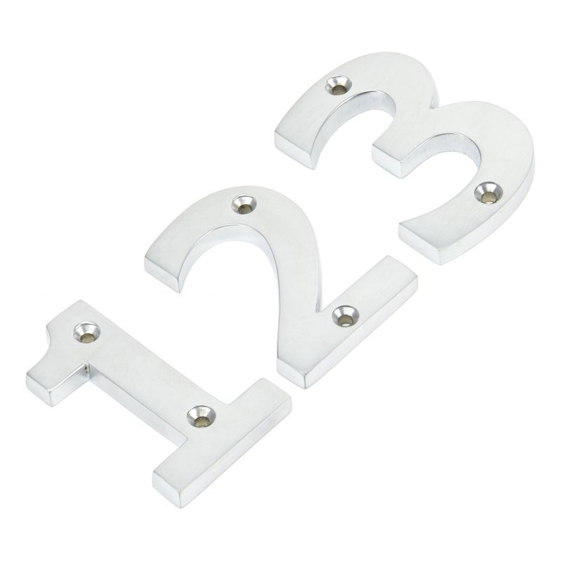 A brushed satin chrome finish is applied to a weighty and chunky brass base. The brushed look finish adds striking contemporary style to your house number sign. These bold and clear numerals are pre-drilled with all fitting screws provided in a matching finish.