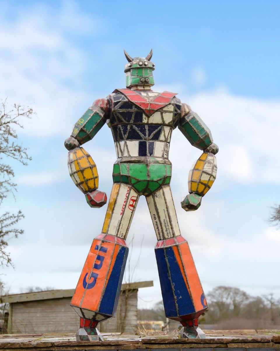 This robot is a commanding presence in any space. Engineered from upcycled oil drums for a solid, robust design, this garden sculpture is ready to withstand the elements and futuristic invaders alike. The polygonal design and bold colours make this robot stand out as if it had just blasted directly out of the pages of a science fiction comic.