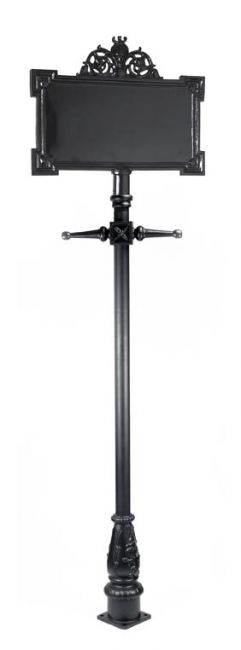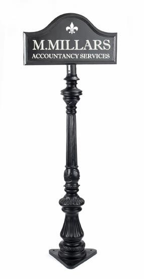 This elegant hand-turned signpost is a delightful way to lend height and charm to your business name. The base is finished in our classic black powder coat and is the perfect complement to your chosen name or logo