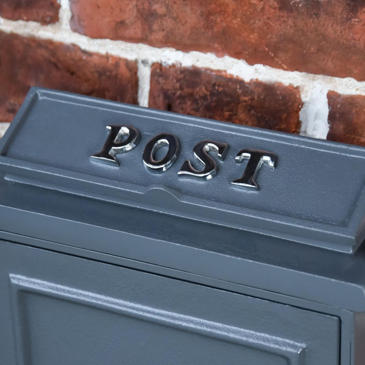 Crafted from high-quality cast metal and complete in a grey finish, this post box features a lockable door and a flip lid to hide the aperture to keep mail safe and secure within. Simple in design and shape, this wall mounted post box features the word ‘POST’ in bright chrome lettering adding a touch of modernity to the overall post box. Supplier with two sets of keys, this post box will easily accommodate A4 letters and envelopes.
