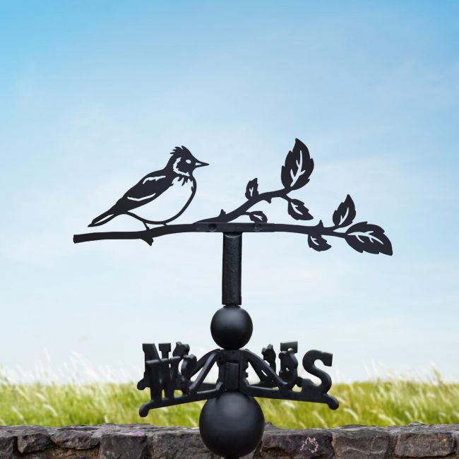 This weathervane is accompanied by a universal bracket making it ideal for wall, shed or roof-mounting. Complete in a sleek midnight black powder coating, this weathervane is perfect for any outdoor space and for bird enthusiasts.
