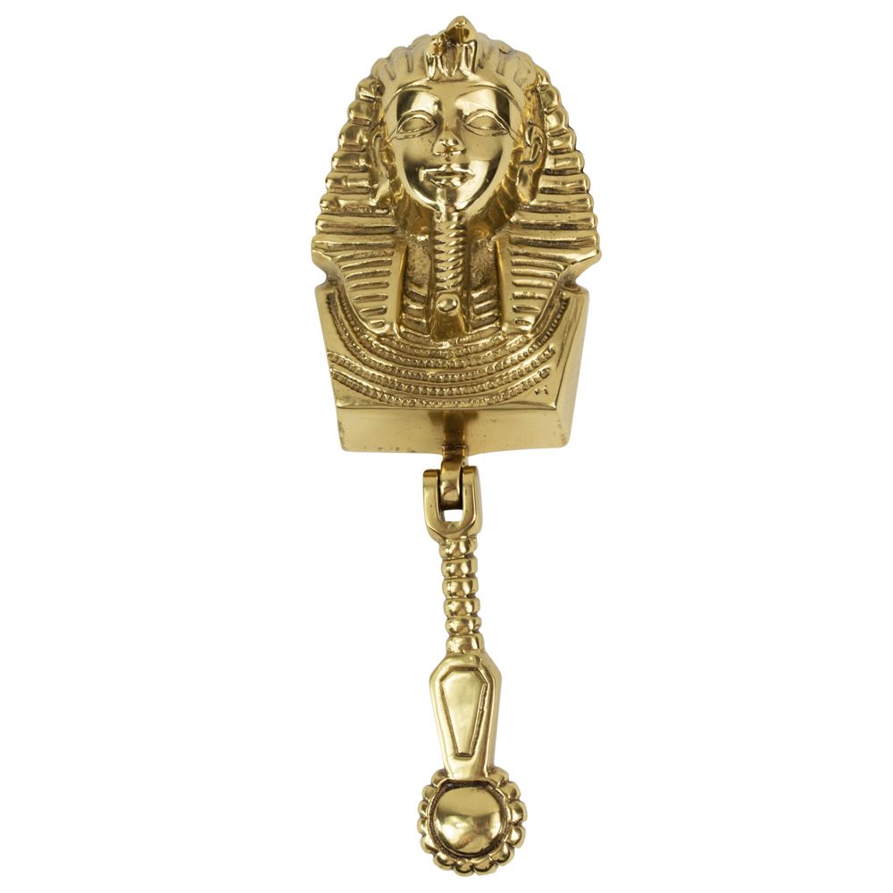 Crafted from robust brass and highly polished for this beautiful shine finish, this unusual yet highly detailed door knocker is ideal for historians or lovers of Ancient Egypt. Featuring the bust of Egyptian Pharaoh Tutankhamun, who took the throne at just a mere eight years old, this door knocker brings with it power and elegance. The knocker striker continues in the Egyptian style completing the look. Perfect when placed against painted or wooden front doors to really wow visitors and guests.