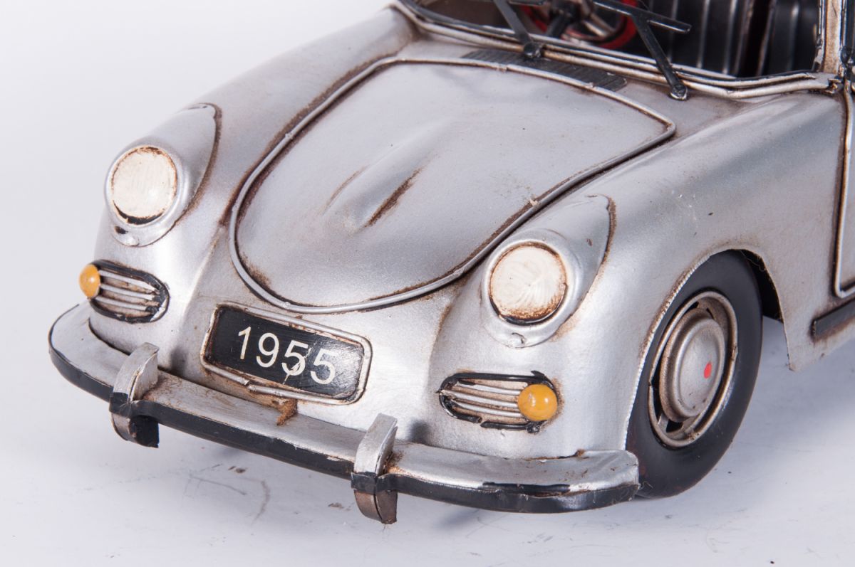 This is a must have replica model of the 1948 Porsche Speedster. The real tin reproduction has been hand painted in aclassic and elegant silver. The 356 was the first production automobile manufactured by the company. Production began in 1948 and the Speedster came with either a hard top or as a convertible. The 356 also enjoyed major racing success, including winning titles at Le Mans and many other iconic races. A charming model of an original and timeless sports car, it deserves pride of place in any collection of automobilia.