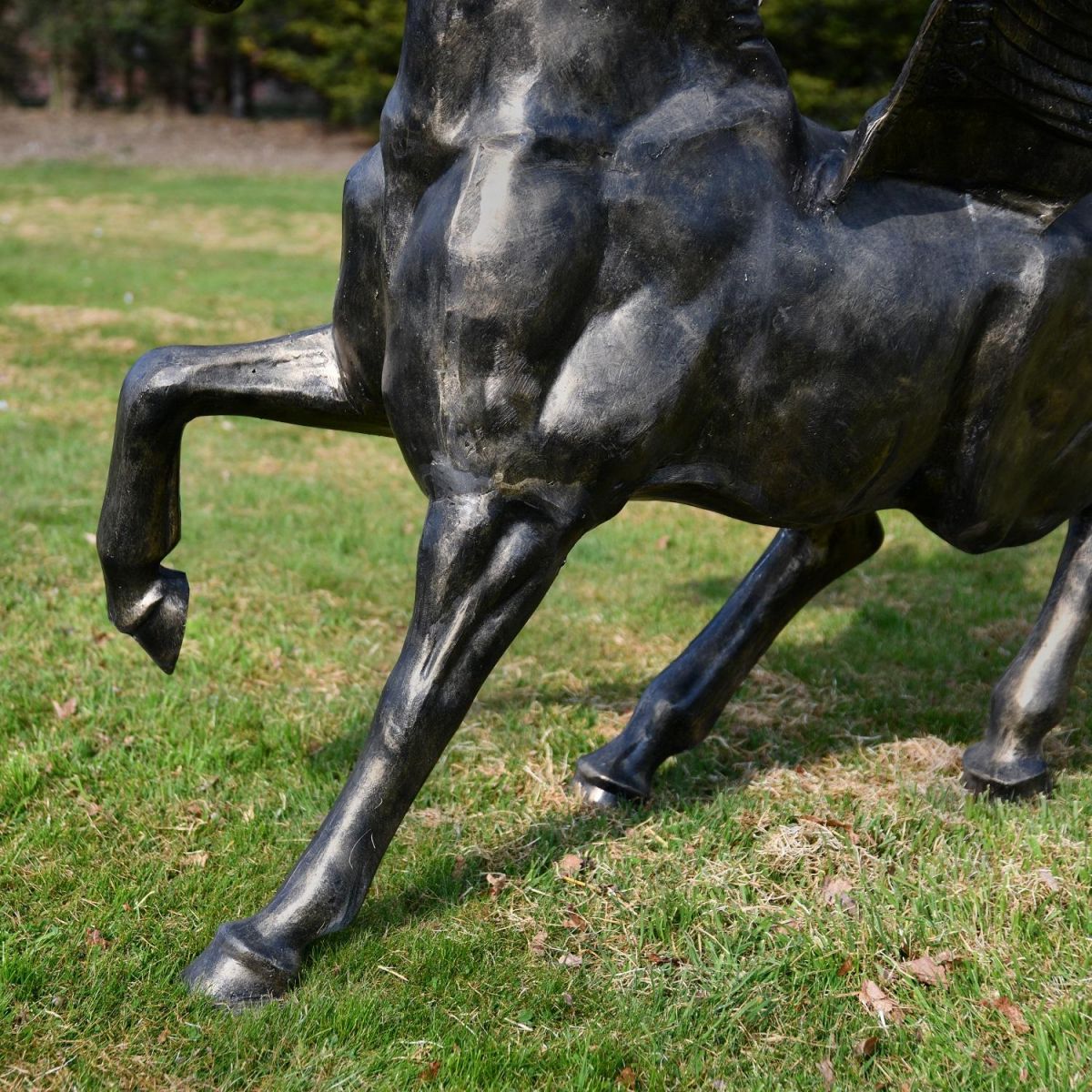 One of the most recognisable animals in Greek mythology, the Pegasus is a mythical winged divine horse, normally depicted in bright white, but here finished in a brushed gold finish. Crafted from robust cast aluminium, this garden sculpture features the Pegasus with iconic horse features and highly detailed feathered wings. Free standing, this sculpture will look fantastic as a statement piece in the centre of large gardens, or at the entranceways of mansions and hotels. An incredible piece of art, which combines modern creation with the ancient Greek world.