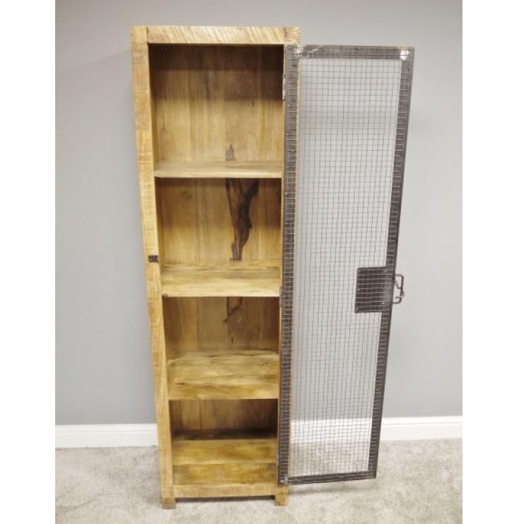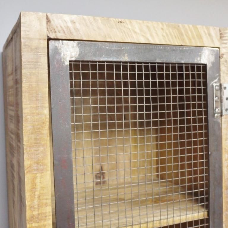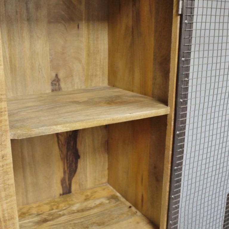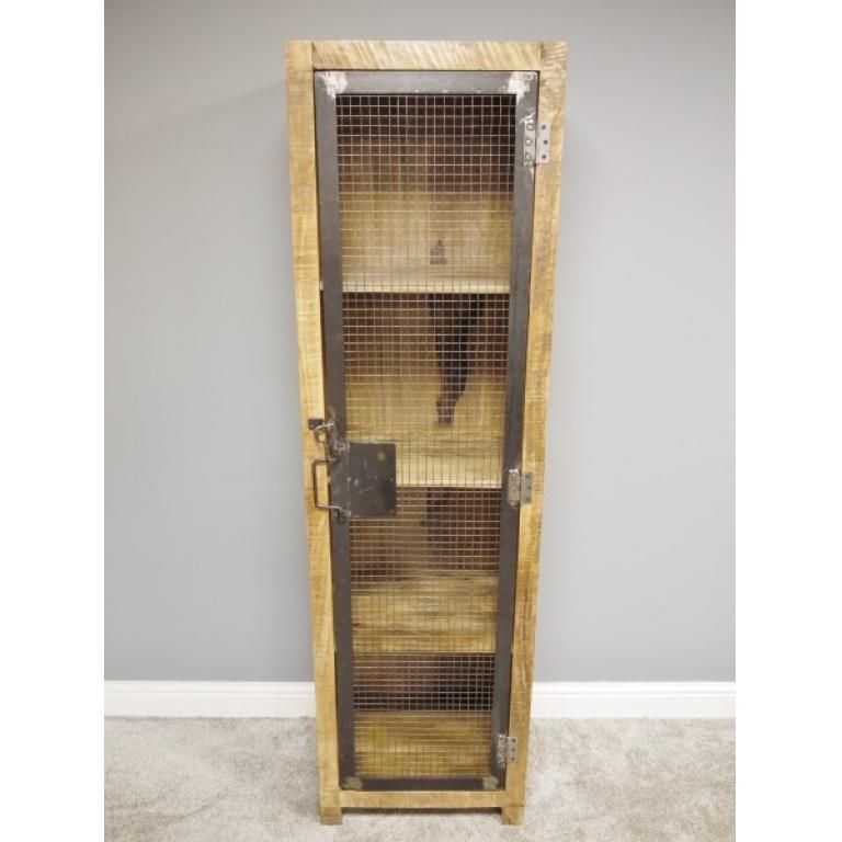 Crafted from smooth mango wood in collaboration with high-quality metal, this tall, industrial-styled cabinet is the perfect accessory for any living space, hallway, or bedroom. This cabinet features four storage compartments, visible through the metal mesh doorway. Complete with industrial-worn finished metal fittings and cabinet door, this piece perfectly combines elegance with practicality. The door comes with a chain lock to keep it secure, as well as four integral wooden legs fitted to provide increased security and stability during use.