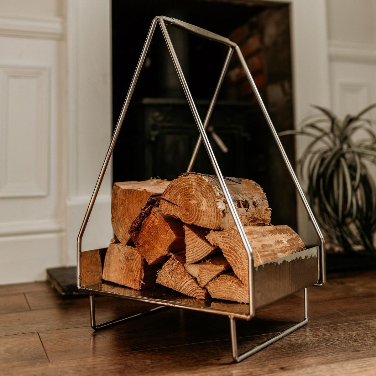Crafted from stainless steel, this gorgeous and simply modern log rack is the perfect home accessory to be placed next to the fireplace all year round. Designed into a teepee shape, or triangle, this wide log rack can hold numerous amounts of logs, ideal for the winter months. Stood on integrated stainless steel legs, it adds height to the overall piece, which adds character and charm. Ideal for placement in living rooms, dining rooms and anywhere that has an open fireplace.