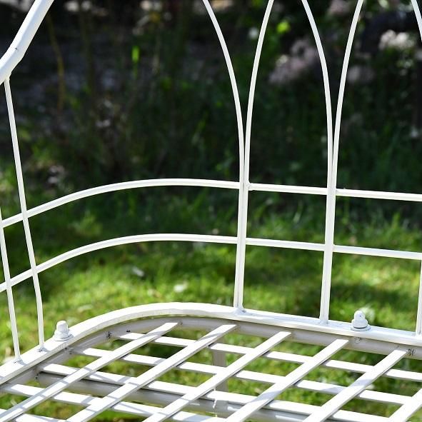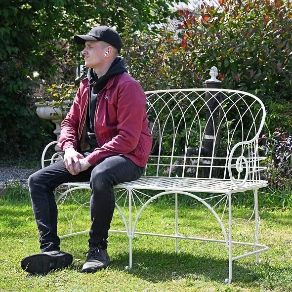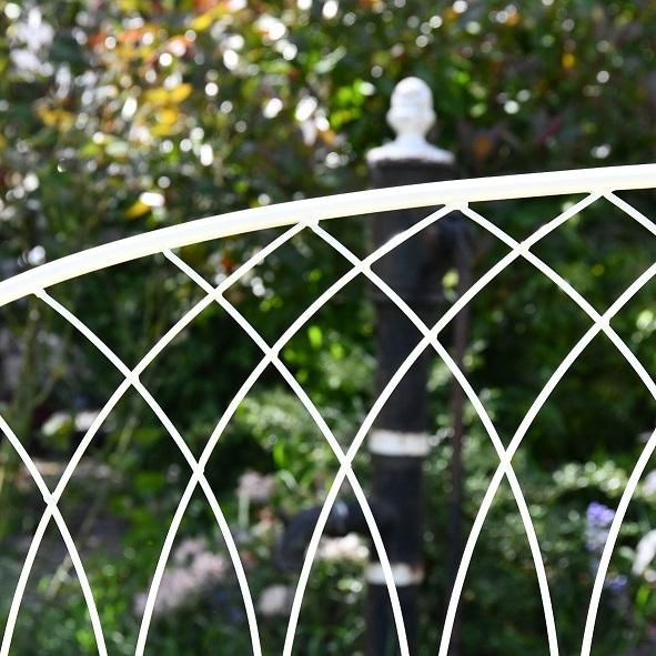 Although more compact in its size, this garden bench beautifully encapsulates all the charm and detailing of our larger designs. Crafted from robust wrought iron and finished in a delicate French cream base coat, this bench would add a sense of countryside charm to any exterior space and would look particularly lovely against the backdrop of flowerbeds or foliage. Intricately detailed throughout, this bench features traditional scrollwork armrests and feet, as well as interlacing arches along its curved backrest and lower panel surround. Complete with two integral armrests, this bench is the perfect way to cosy up with a loved one on a warm summer afternoon whilst in the comfort of your own garden or porch. Also available in midnight black, railing grey and warm bronze finishes. Please use the drop-down menu to select a different finish.