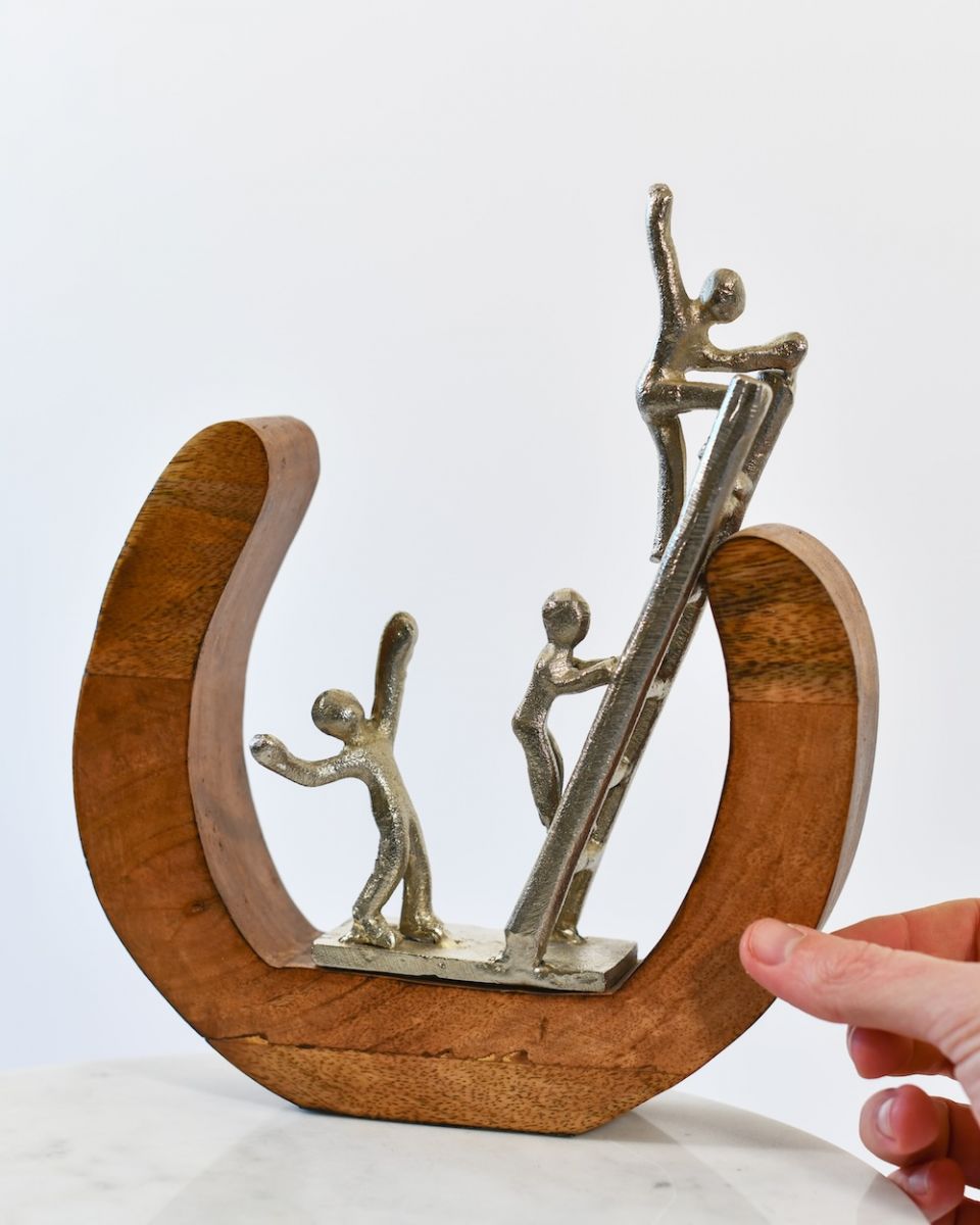 Our handcrafted ‘Liberation’ sculpture is a guaranteed statement piece that would enhance any home, shelf or workspace. Made from high quality cast aluminium with a base of solid mango wood, this would make a beautiful gift that will last a lifetime.