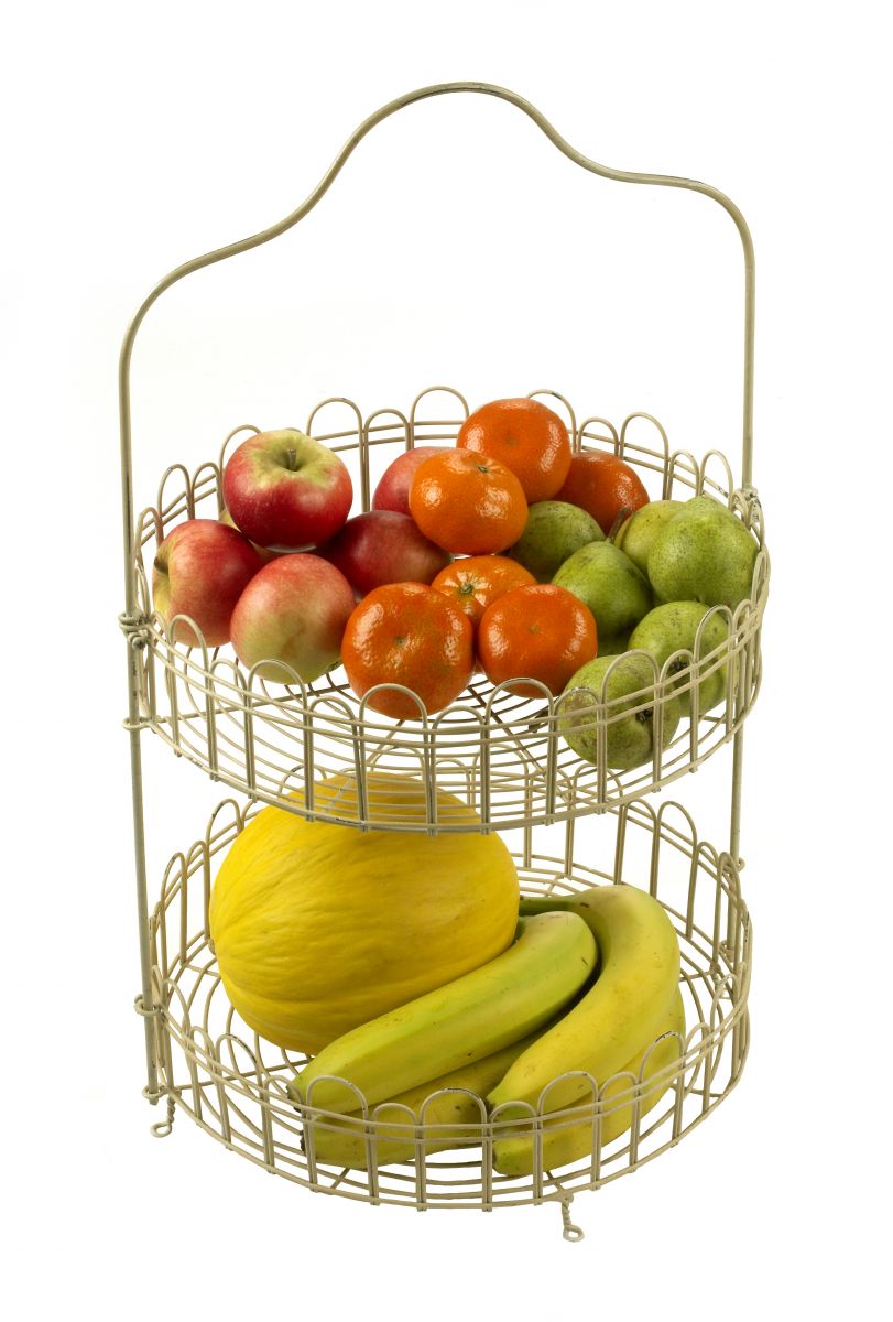 This pretty two tier fruit or cake stand is new to our range, and is hand made in wrought iron and finished in a rich, soft cream.