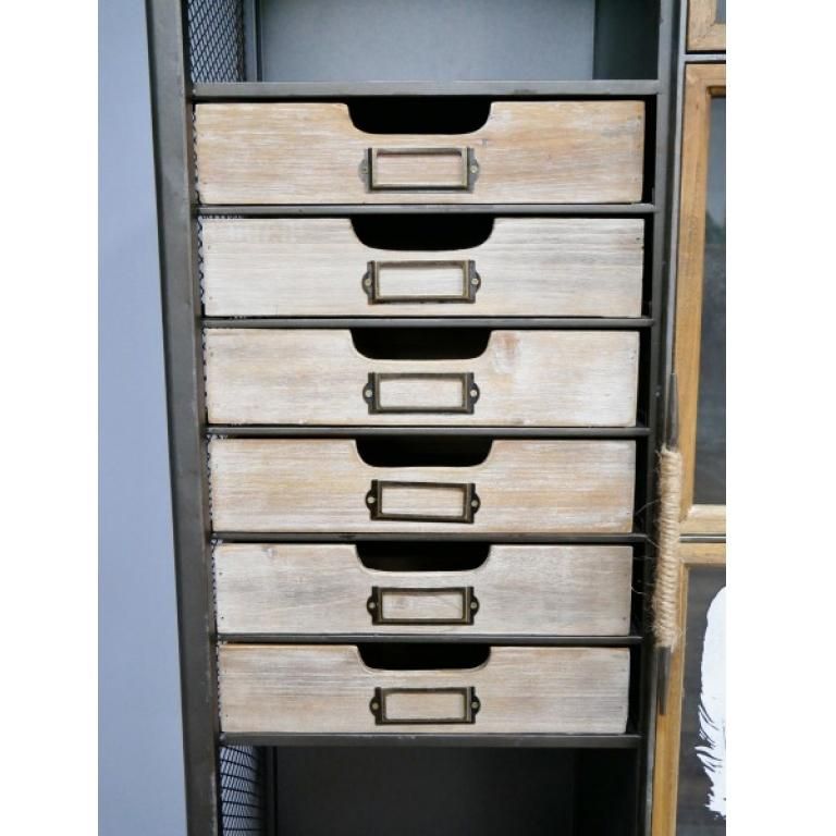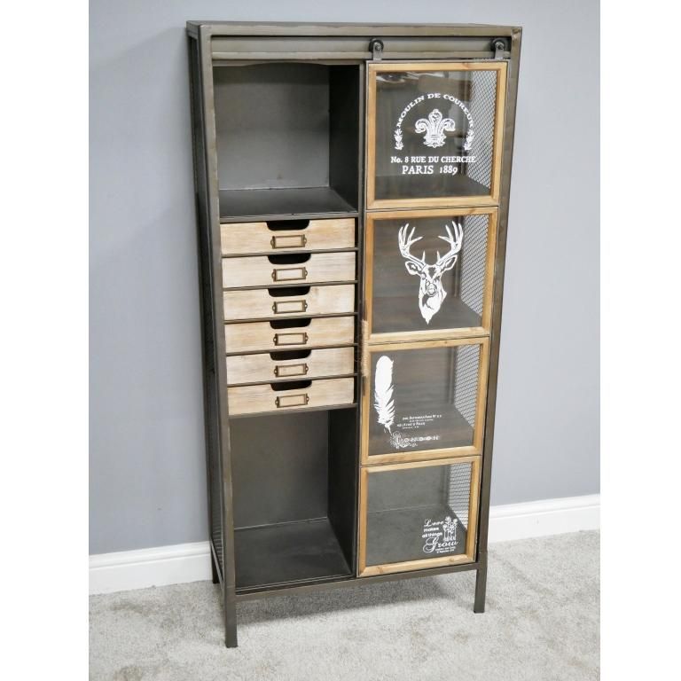 Crafted from a combination of high-quality metal and smooth fir wood, our “The Stag” industrial storage cabinet has a multitude of storage options. Thanks to its glass cabinet storage section, wooden drawers, and additional storage above and underneath allow for maximum options to safely store your belongings. Equipped with integral feet to allow for increased stability, this item is perfect for any living space, kitchen, or dining area.