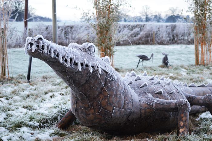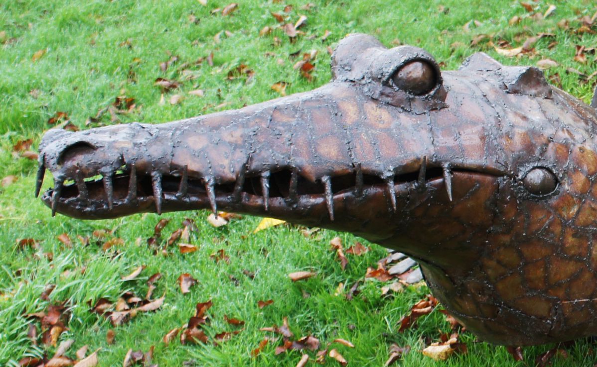 Inspired by the American crocodile, this gentleman has been created by hand from welded pieces of iron. The surface of this garden or outdoor sculpture has an authentic crocodile skin effect with a delightfully weathered bronze finish. Wonderfully life like in detail this piece features a scaled back and tail, as well as a powerful jaw. This garden sculpture would be ideal in a commercial or residential setting, emerging from a lake or hiding in the bushes to shock neighbours and guests. Where ever you choose to place this sculpture it is sure to attract attention and inspire a response.