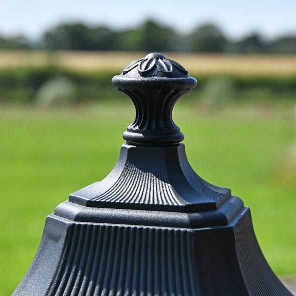 Drawing on the traditional style of Victorian street lighting, this lantern is simple in detail with a timeless sculpted finial. The pillar light is fitted with clear, bevelled glass panes for maximum output and a more polished and classical finish.