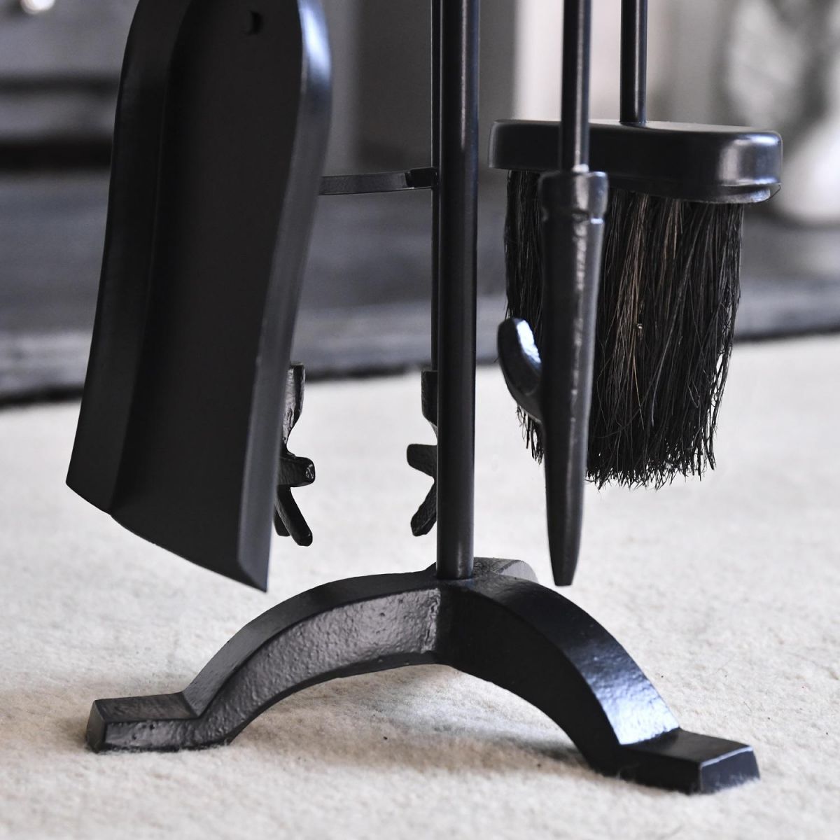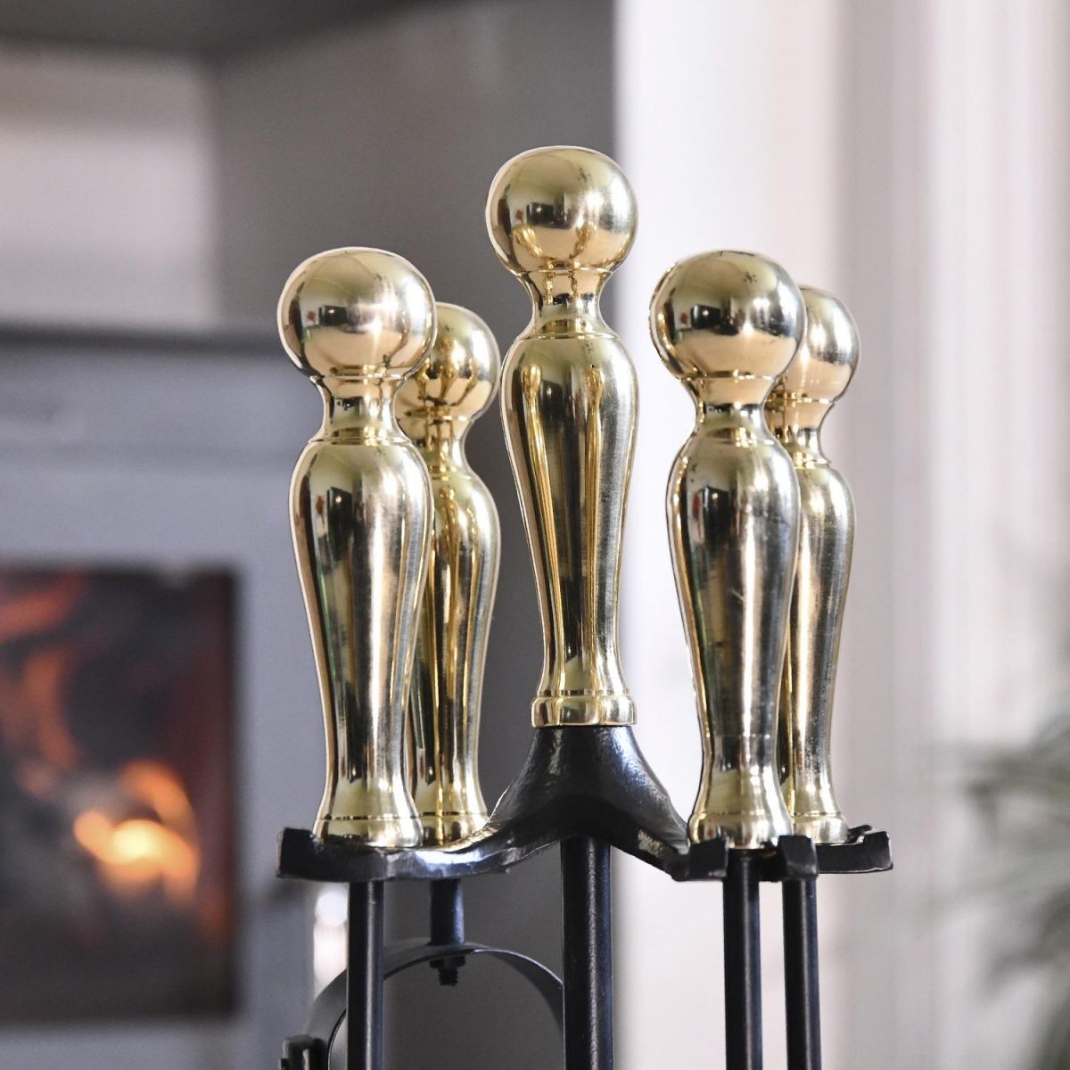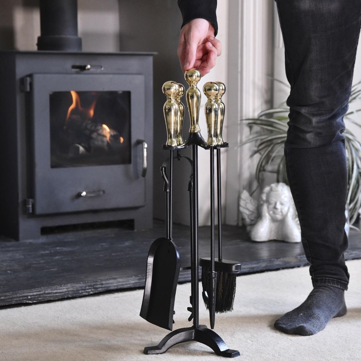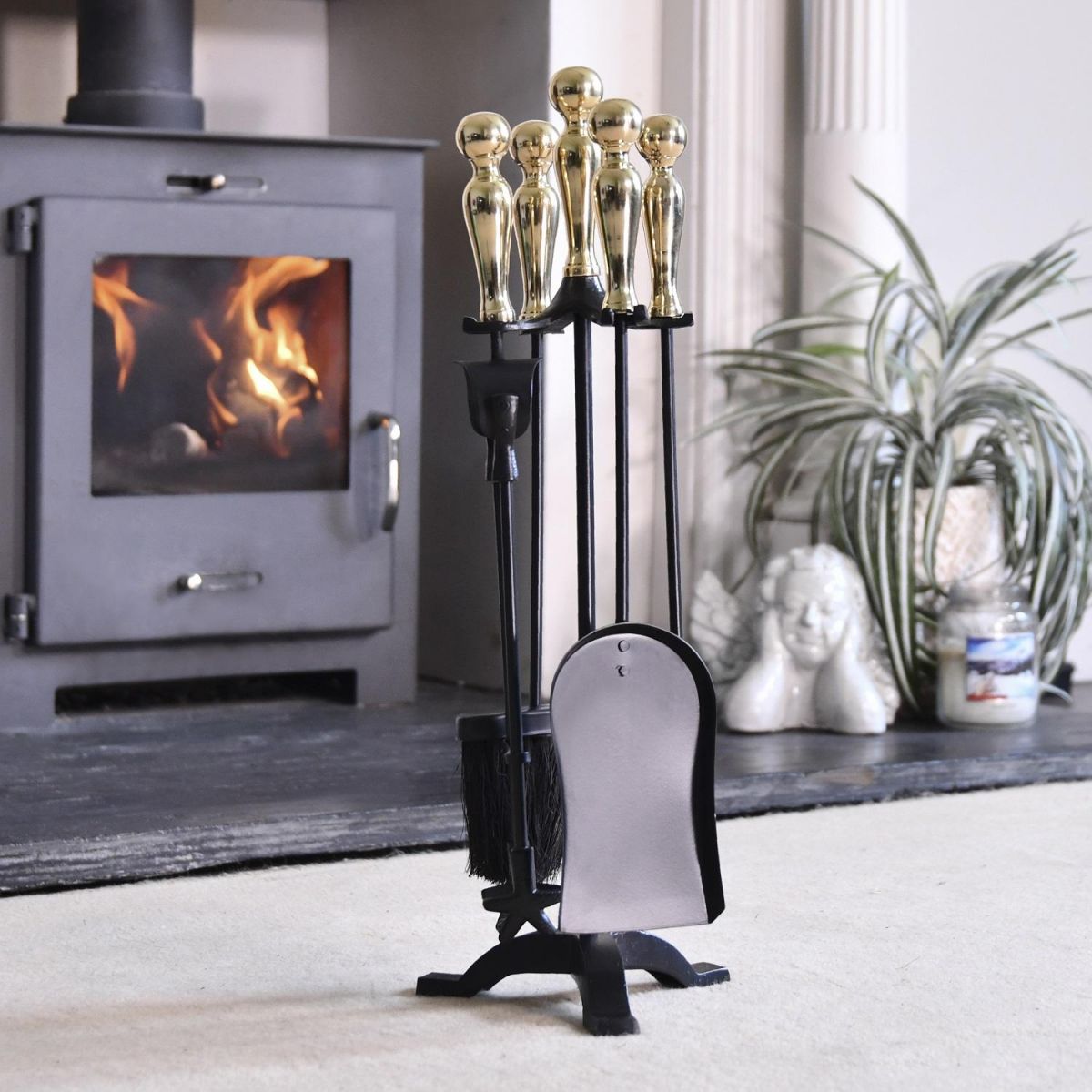 Crafted from high quality robust steel and finished in a sleek midnight black finish, it offsets the gorgeous polished brass handles which adorn the top of the companion set. Situated on a three footed stand, this traditional style companion set will ensure fireplaces are kept clean and tidy throughout the year, thanks to the four tools; shovel, brush, poker and tongs. The curved design on the handles ensures comfort and support when using the product. A wonderful way to add style and traditionalism to your home.