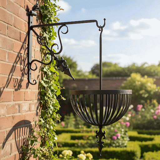 Elevate your exteriors, utilise space and display your blossoming flowers with our traditional wrought iron hanging basket.