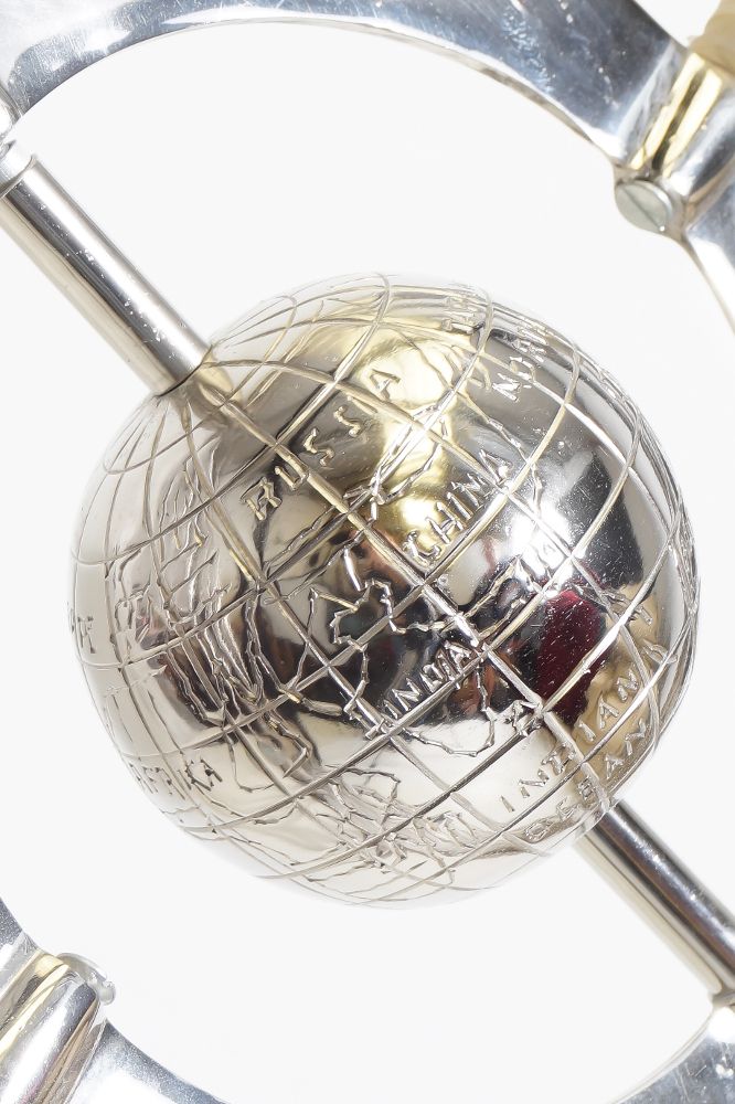 This large tripod mounted armillary is a real show stopper mounted on a heavy black wood and bright chrome tripod. The photography does not do justice to this impressive work of art.