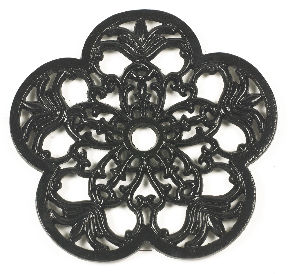 Protect your surfaces or dining table with one of our beautifully designed and lovingly created cast iron trivets. The craftsmanship is clear to see, with the intricate metal work providing a classic statement feature for the home as well as a practical place for your hot pans, pots and dishes. Our elegant trivets come in a variety of designs and colours, with this petal pattern hand-finished in sleek midnight black.