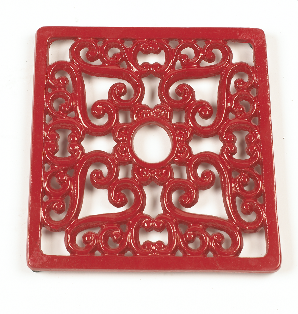 Our range of cast iron trivets are attractive additions to any kitchen. These cast iron trivets are all solid cast metal and are ideal for the busy kitchen or as plant stands. Trivets have 6 different styles to choose from and all are finished in heat resistant paint. Trivet colours include green, blue, red, cream and black. Protect your kitchen worktops from burns and damage.