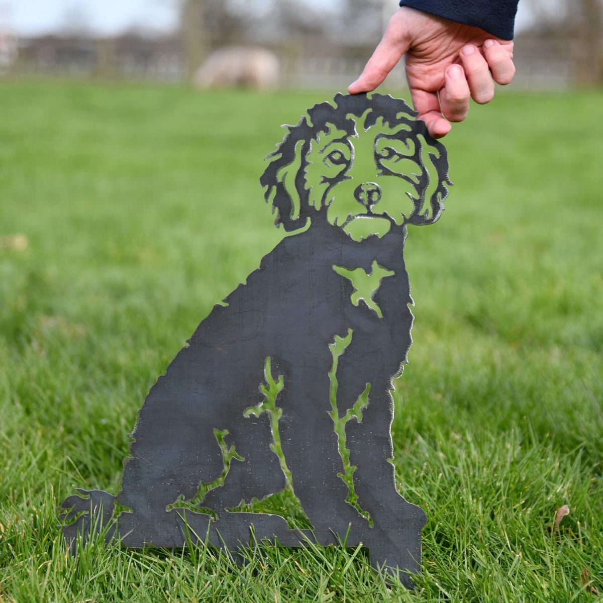 A crossbreed of a cocker spaniel and a poodle, the Cockapoo is a firm favourite for families due to their lovely temperament. Crafted from high quality steel and left to naturally age when exposed to the elements, this garden silhouette features several integrated ground spikes for easy installation to the ground or within flowerbeds. A wonderful gift or garden accessory for any cockapoo lover or owner.