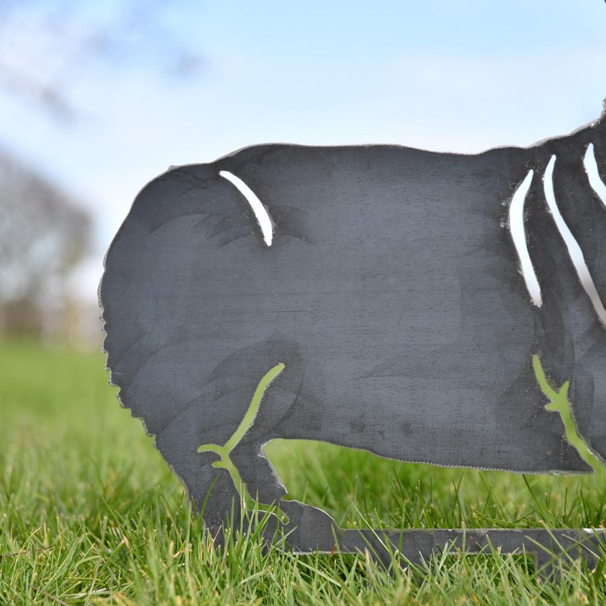 Crafted from high quality steel and left to naturally age when exposed to the elements, this fantastic silhouette features the Pembrokeshire Welsh Corgi, with iconic perked ears. Famous for being Queen Elizabeth’s II favourite breed of dog, this royal breed of dog, goes back thousands of years and can now be in your home for years to come. Complete with four integrated ground spikes, it makes for easy installation to grass areas, flowerbeds or potted plants. Life-size, this silhouette will certainly add character and charm.