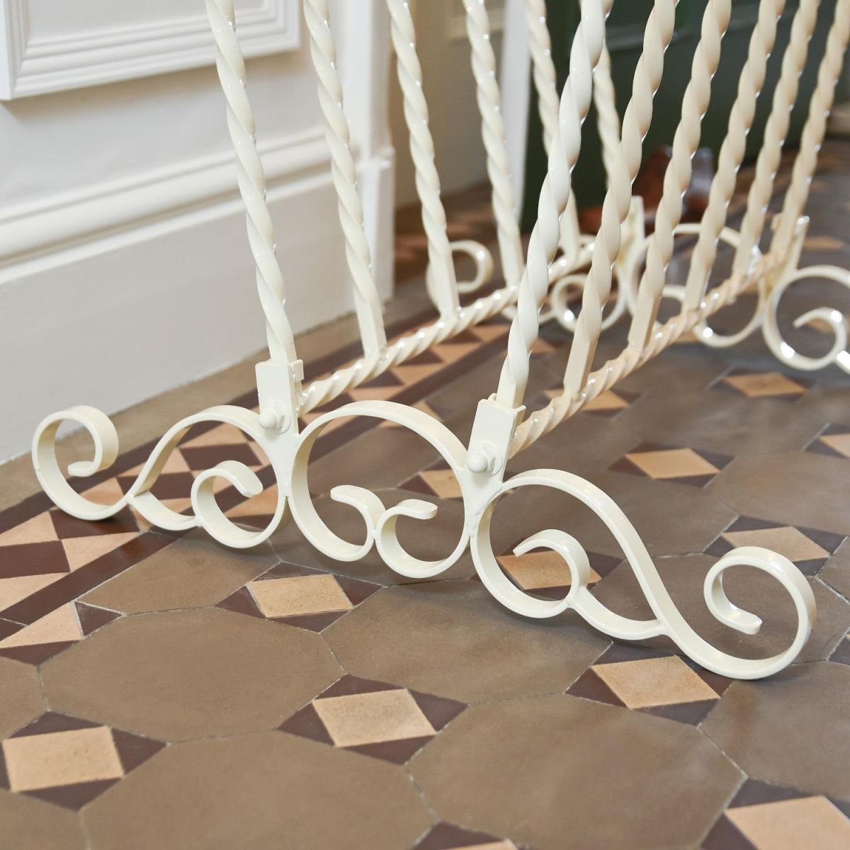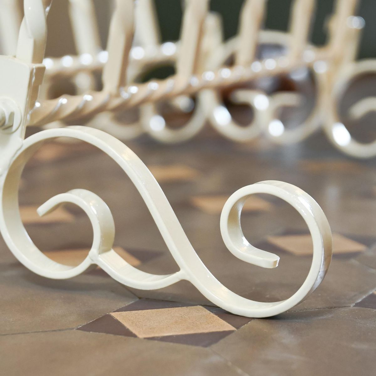 An ideal way to keep the entire family’s boots, clean dry and neatly stored, this wrought iron rack is delightfully classical in design and will hold up to six pairs of wellies. The stand has been finished in antique cream which is beautifully complemented by the hand painted ceramic finials. The robust freestanding boot rack has V like shape to help keep muddy shoes separated, making cleaning even easier.