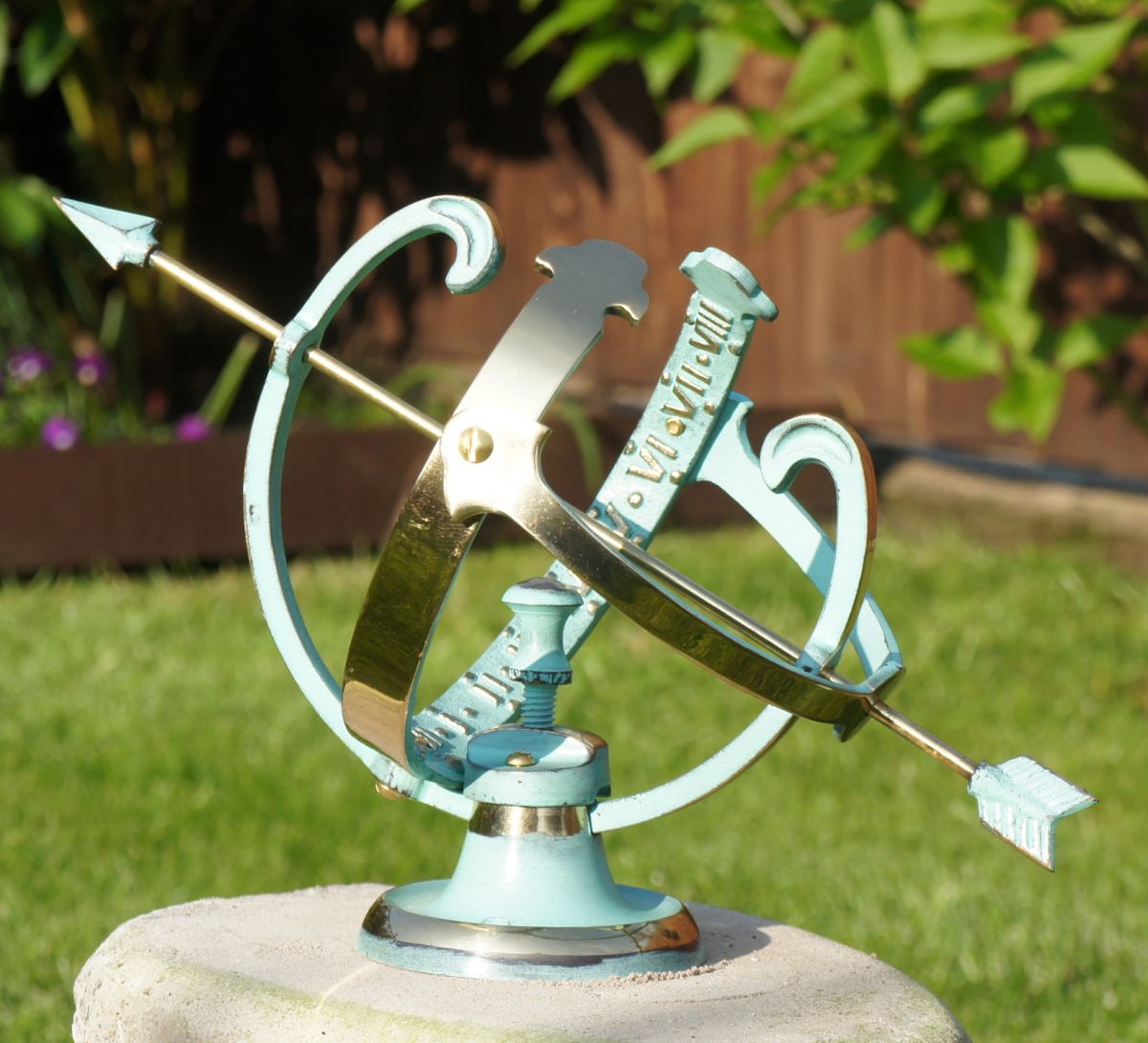 Please note, we recommend that this armillary sundial is installed upon a column or plinth (not supplied) using its two pre-drilled screw holes.