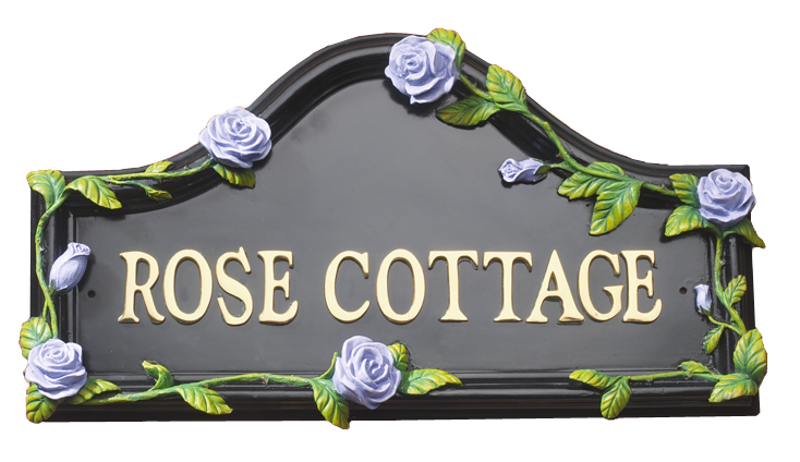 This double sided design features a stunning border of hand painted roses. The exquisite detailing has been finished in a beautifully pastel lilac, lending both colour and charm to the piece. Arched in shape the plaque can accommodate a house number as well as a choice of lettering.