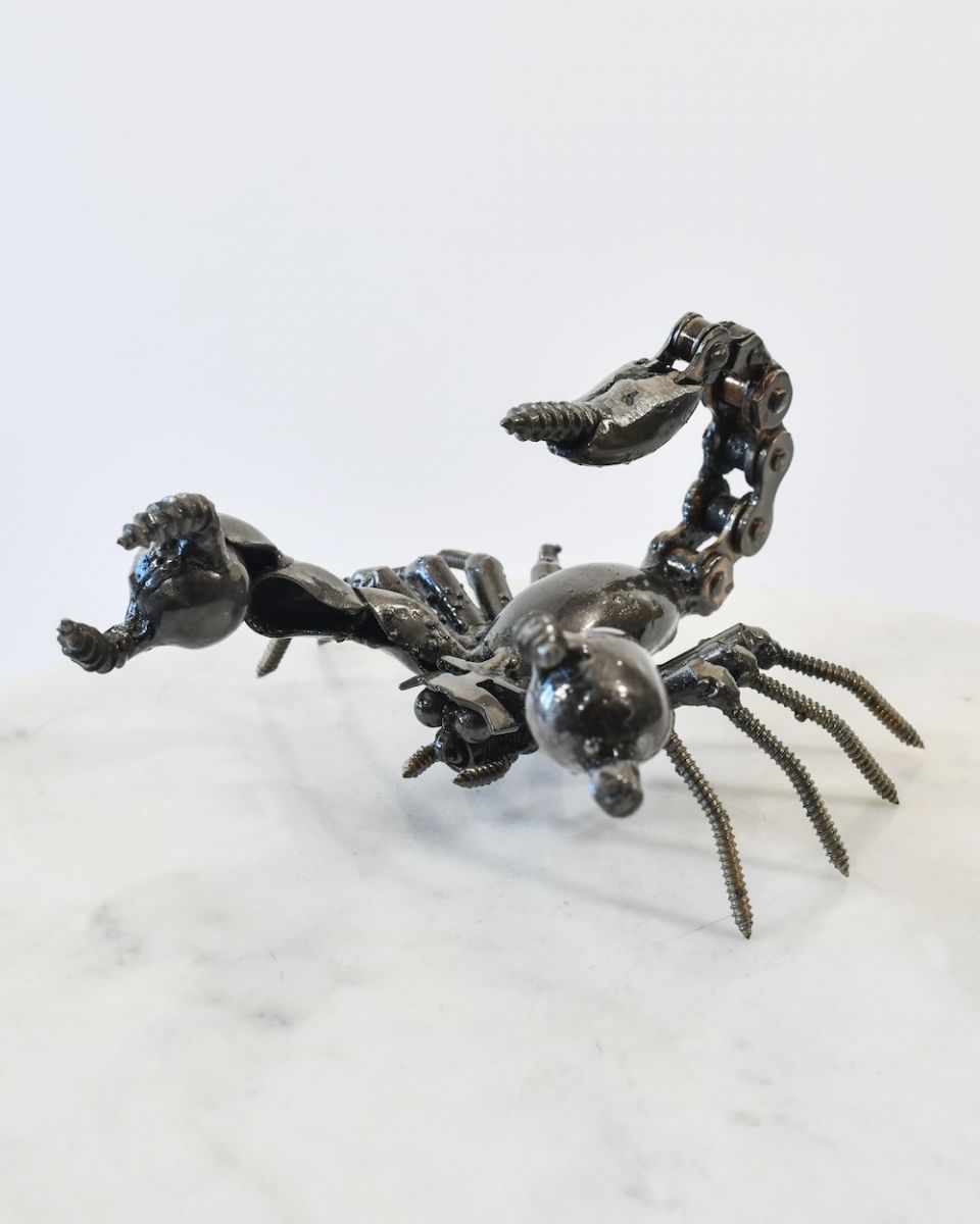 Our Recycled Metal Scorpion Sculpture has been cleverly reimagined from scrap metal pieces into a charming sculpture that would liven up any workspace or shelf. A unique gift that has the added benefit of saving scrap fixings from landfill!