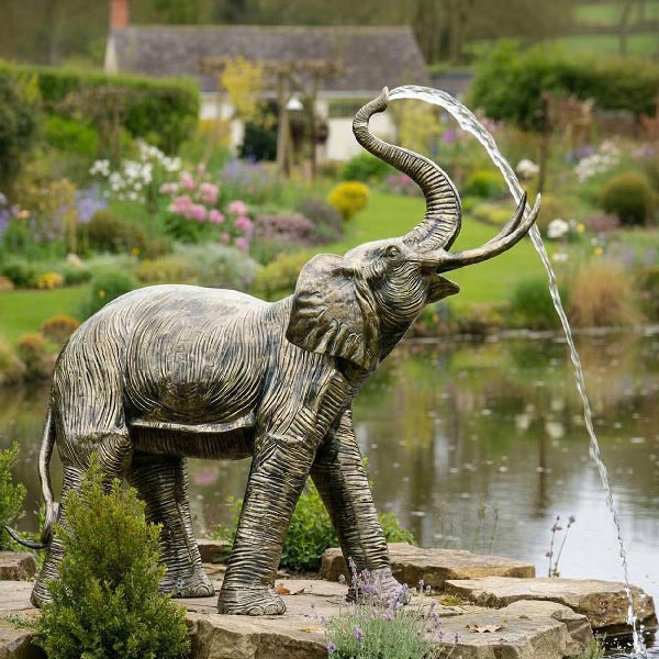 This wall mounted fountain features a detailed elephant design and would suit a garden or patio area. The item has been made from cast aluminum and finished in a stunning golden bronze.