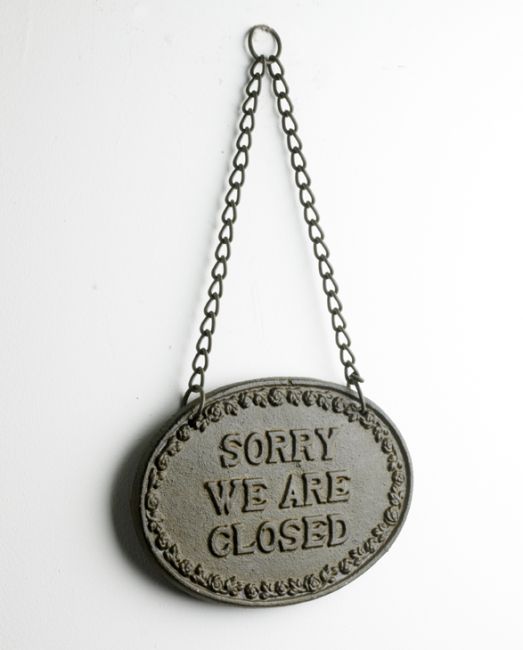 This "We are open" hanging shop sign is produced from cast iron with a charmingly rustic finish.