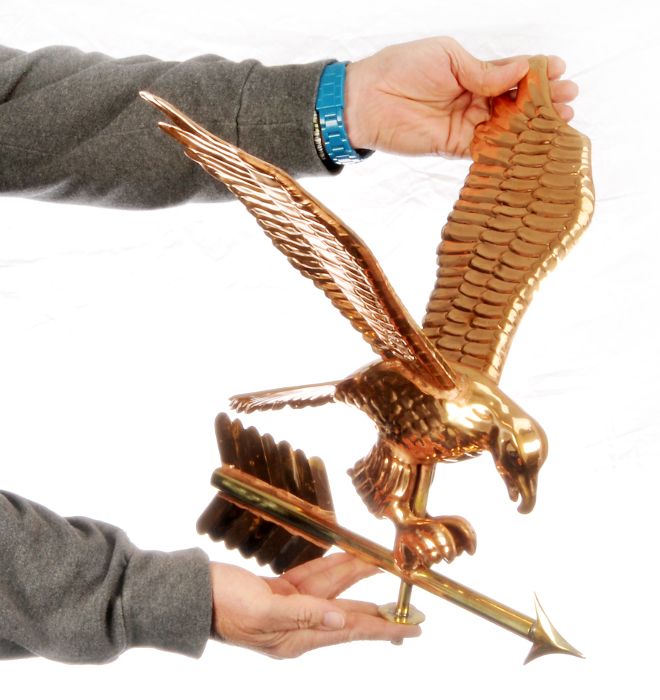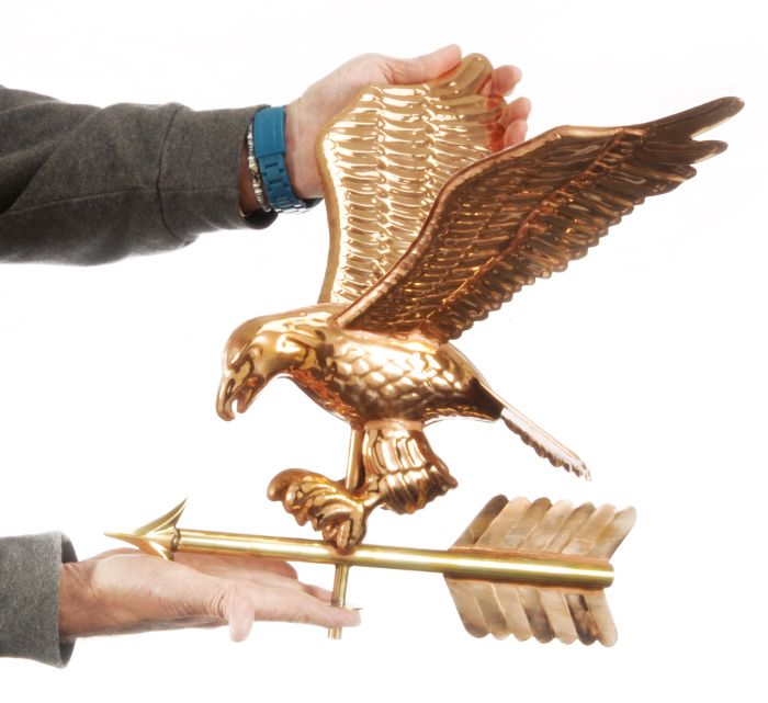 This magnificent weathervane has been created showing the eagle just about to capture its prey. With incredible spreading wings and clawed feet, it really is a beautiful piece of art work. Extremely lifelike, visitors will be amazed that he is not real.