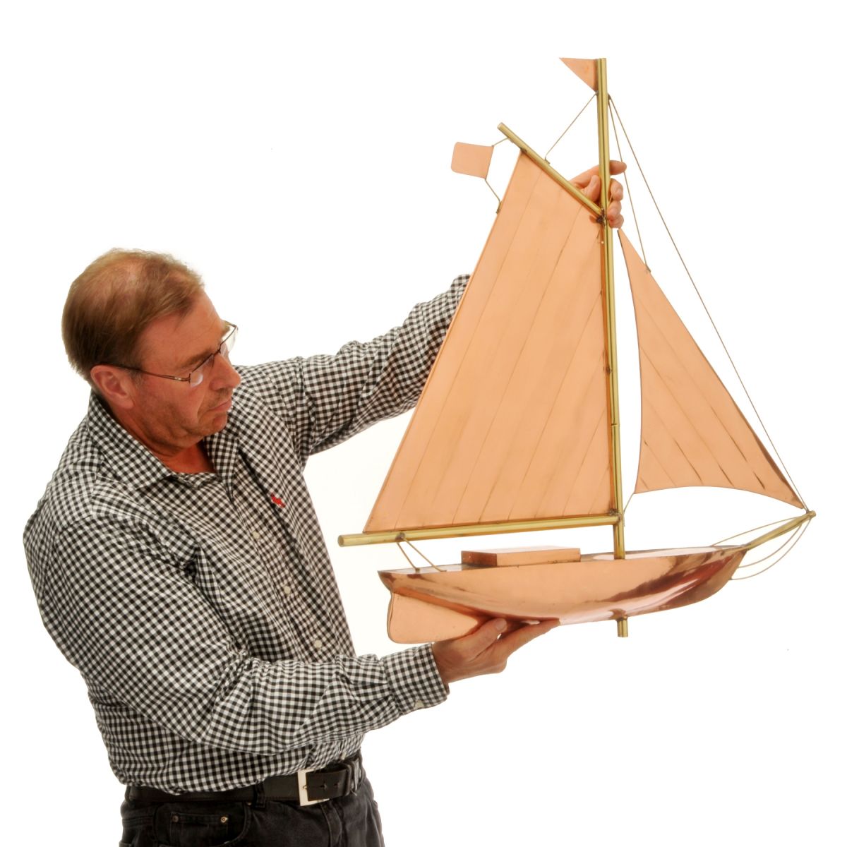 This effortlessly regal weathervane is a stunning example of a classic sail boat brought to life in exquisite 3D detail. Hand made in copper the yacht decoration has a beautifully polished finish and is a charmingly dramatic feature for your home. A delightful gift for lovers of all things nautical.