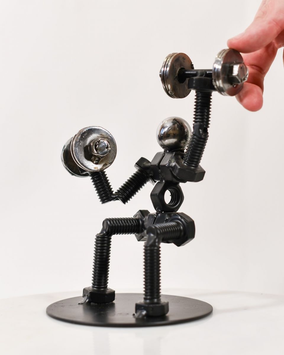 Our Recycled Metal Weightlifting Sculpture is a unique and characterful addition to any home. Skillfully crafted from scrap metal pieces to save them from landfill, this is a no-guilt gift that would delight any gym goer!