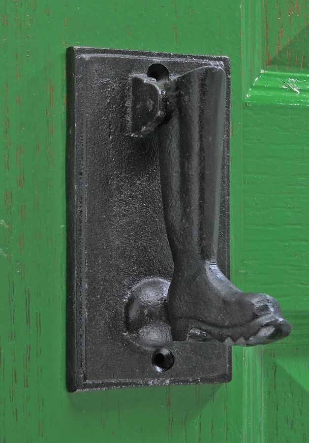 This traditional cast iron door knocker is unusual in design yet full of character, it features a built-on back plate, whilst the actual striker takes the shape of a delightful little welly.