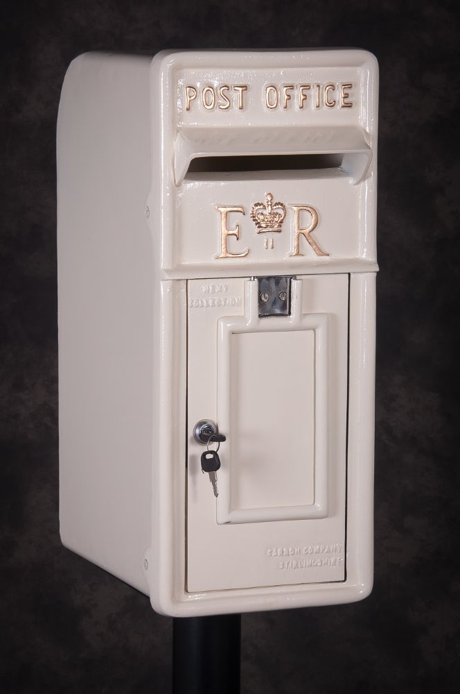Taking its inspiration from the ERII post boxes which line nearly every corner of Britain and have done through all periods of history, this classic design has been updated into the 21st Century and has been hand painted and finished in a pure white colour with gold lettering. This cast aluminium post box will add a sense of history and royal charm to any property exterior. With lockable front-opening door, post will be kept safe and with the addition of a hooded aperture, it will ensure rain run-off.
